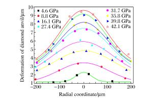 摘要: 基于白光频域干涉的基本原理,提出了一种可实现高压下金刚石压砧杯型形变原位测量的方法。简单介绍了利用频域干涉技术测量金刚石压砧在高压下的杯型形变的基本原理,并开展了实验研究,实验最高压力达到42.1GPa。实验结果显示,金刚石压砧的杯型形变与压力呈线性关系,最大值达到11.1μm,从实验上证实了最近的有限元数值模拟结果。Abstract: In this research we presented a novel method based on frequency domain interferometry to in situ measure the cupping deformation of diamond anvils under high pressures.First we introduced the working principle of the cupping deformation measurements based on the frequency domain interferometry, and then we carried out the experiments under high pressures.The cupping deformation of diamond anvils is obtained under high pressures up to 42.1GPa, and its maximum value reaches 11.1μm.The experimental results show that the cupping deformation increases linearly with the pressure.Our work verify the recent finite element modeling calculations.