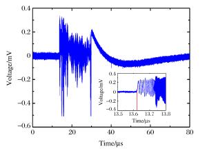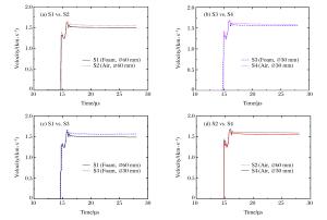 Probe Location of test point t0/μs v1/(m·s-1) v2/(m·s-1) S1 Foam cushion, Ø60 mm 14.483 1 307 1 494 S2 Air clearance, Ø60 mm 14.679 1 394 1 547 S3 Foam cushion, Ø30 mm 14.542 1 340 1 566 S4 Air clearance, Ø30 mm 14.721 1 439 1 593 -