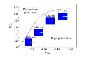 摘要: 高速/超高速侵彻问题一直是武器设计者和防护工程专家关注的焦点问题之一。随着撞击速度的提高,弹体可能进入流体侵彻阶段,侵彻深度不再随速度的增大单调上升。针对撞击速度增加侵彻深度可能出现增量逆转的现象,开展了大着速范围长杆弹侵彻深度变化的数值模拟研究,分析了弹体硬度、头部形状、弹体材料及靶体材料对侵彻转变点的影响。结果表明:随着长杆弹冲击速度的提升,侵彻深度先上升后下降;同时,弹体硬度提高,到达侵彻转变点对应的撞击速度提高;尖卵形头部弹体到达侵彻转变点的撞击速度比球形头部弹体高;此外,弹靶材料对侵彻深度转变也有较大的影响。Abstract: Hypervelocity penetration is an important issue for a weapon designer and protection engineering experts.With the increase of the impact velocity, a projectile may transition into a fluid penetration phase, and its depth of penetration (DOP) no longer rises monotonously with the velocity.Numerical simulation of the penetration processes of a long rod projectile at an elevated impact velocity was performed to analyze the variation and influencing factors of the transition point.Influences of the hardness, nose shape, material of the projectile and the target on the transition point of DOP were simulated.The simulation results show that, with the increase of the impact velocity, the DOP increases at first and then decreases at a certain velocity (called the transition velocity).The velocity of the transition point improves with the increase of the projectile's hardness.The Ogive-headed projectile has a higher transition point than the spherical-headed projectile.Moreover, the projectile/target material also has significant effects on the transition point.