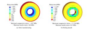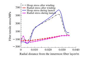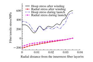 Figure  8.  Hoop stress distribution of barrel under type Ⅱ constraints before and during launch