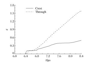 摘要: 建立了研究炸药爆轰驱动条件下金属材料Rayleigh-Taylor不稳定性问题的实验技术和数值模拟方法。利用该实验技术和数值模拟方法研究了炸药爆轰驱动条件下,铝飞层界面Rayleigh-Taylor不稳定性增长规律,数值模拟显示界面扰动振幅以指数规律增长。数值模拟结果和实验定性相符,但是定量相比有较大差别,原因是高压高应变率加载条件下铝的强度增强,而数值模拟时所采用的SG本构模型在这样的加载条件下低估了铝的强度而导致对扰动增长致稳作用不足。然后在数值模拟中,通过改变材料的初始剪切模量和初始屈服强度,发现在一定范围内,初始剪切模量对材料动态屈服强度没有影响,而初始屈服强度增大可以明显提高材料的动态屈服强度,达到抑制扰动增长的目的,表明材料屈服强度主导界面扰动增长。