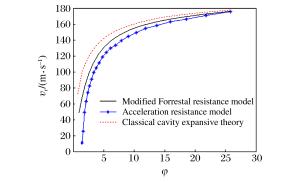 摘要: 基于经典空腔膨胀理论、Forrestal阻力修正模型和加速度阻力模型研究了战斗部侵彻强度靶过程中长径比对于侵彻阻力的影响,通过对不同长径比条件下战斗部侵彻余速的计算,分析了长径比对阻力项系数的影响,讨论了3种理论的适用范围。结果表明:当战斗部长径比小于3时,加速度阻力项系数变化对侵彻过程影响较大;当长径比大于5时,3个模型的计算结果趋于一致,均适用于工程计算。Abstract: In this paper, the influence of the aspect ratio on the penetration resistance in the target penetration process of the warhead was studied based on the classical cavity expansion theory, the modified Forrestal resistance model and the acceleration resistance model.The influence of the aspect ratio on the resistance term coefficient was analyzed and the range of applicability of the three theories was discussed by calculating the penetration residual velocities of the warhead with different aspect ratios.The results show that the variation of the acceleration resistance term coefficient has a significant influence on the penetration process when the aspect ratio is below 3;when the aspect ratio is above 5, the results of the three models tend to converge, and they are all applicable to engineering calculation.