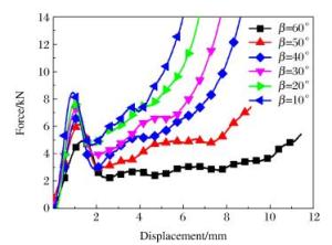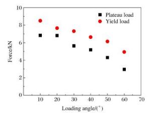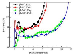 Diameter/mm Height/mm Density/(g·cm-3) Loading angle/(°) Loading speed/(mm·min-1) 32.50 9.88 0.49 10 1 31.92 10.24 0.49 20 1 32.50 10.00 0.49 30 1 31.94 10.06 0.49 40 1 32.00 10.22 0.49 50 1 32.00 10.08 0.49 60 1 表 2 各单元材料和材料模型
