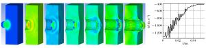 图  C组破片侵彻过程数值仿真过程及速度曲线