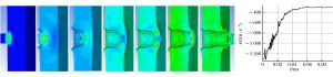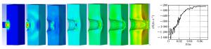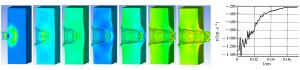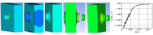 Figure  4.  Numerical simulation and velocity curve of fragment penetration process