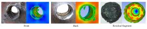 Figure  5.  Comparison of physical and simulation results of the failure of target plate and cylindrical residual fragment