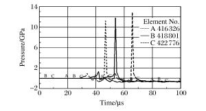 Theoreticalformula Collision pressure/GPa Error/% Calculation Simulation Gurney 22.08 17.08 -29.3 Aziz 14.42 17.08 15.6 Deribas 17.30 17.08 -1.3 表 7 5 mm药厚下碰撞压力理论计算结果与数值模拟结果的比较