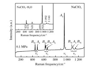 Internal vibrationalmodes Symmetry classification Anhydrite-type Monazite-type AgMnO4-type Barite-type ν1 Ag Ag+Bg Ag+Bg Ag+B2g ν2 Ag+B2g 2Ag+2Bg 2Ag+2Bg Ag+B1g+ B2g+B3g ν3 Ag+B1g+B3g 3Ag+3Bg 3Ag+3Bg 2Ag+B1g+ 2B2g+ B3g ν4 Ag+B1g+B3g 3Ag+3Bg 3Ag+3Bg 2Ag+B1g+ 2B2g+ B3g Total 6Ag+5B1g+2B2g+5B3g 18Ag+ 18Bg 18Ag+ 18Bg 11Ag+7B1g+11B2g+7B3g 表 2 实验观察(0.1MPa)及理论计算(1.5GPa)的硬石膏型NaClO4拉曼频率及其归属
