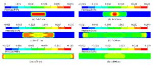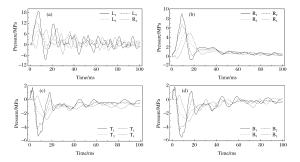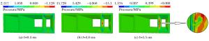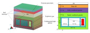 摘要: 在燃气通过地下管廊输送过程中,若燃气泄漏进入管廊内部并引起爆炸将会产生严重的后果。以平潭综合试验区环岛路管线工程为背景,借助LS-DYNA非线性动力分析有限元软件,基于流固耦合和ALE多物质算法,建立地下空间燃气爆炸数值计算模型,探讨管廊内燃气爆炸过程中爆炸冲击波对管廊结构的影响。数值计算结果表明:在爆炸过程中,超压峰值从爆源中心转移到波阵面上,导致爆源附近压力低于波阵面压力,爆源附近形成负压区;爆炸荷载作用下,燃气仓内距离爆源最近的内墙上的测点超压值最大,在t=7.8 ms时达到最大值为18.65 MPa,且在t=10 ms左右时,位移和速度达到最大值,分别为10.47 mm、3.303 m/s;气体爆炸后,管廊燃气仓内墙正负压振荡时间持续较长,振动现象最为明显,最易发生破坏。Abstract: Many factors can cause natural gas explosions, and it will lead to serious structural damages and human injures.This study is focused on the leakage of natural gas from underground pipe gallery.A case study has been made in a project of the circular island road in Pingtan comprehensive test.An underground explosion was modeled by use of the fluid-solid coupling and multi-material ALE algorithm in finite element software LS-DYNA.On this basis, the influence of explosion shock wave on the surrounding structure was discussed.Numerical results show that, during the whole process of the explosion, the overpressure transferred from explosion source center to the wave front, leading to the lower pressure in the explosion source compared to the wave front and the formation of a negative pressure zone near the explosion source.The overpressure value of point which is on the internal wall closest to the explosion source in the gas cabin is larger than that of other points.The maximum overpressure is 18.65 MPa at t=7.8 ms.At t=10 ms, the displacement and velocity reach their own maximum values of 10.47 mm and 3.303 m/s, respectively.Explosion in the gas cabin, interior wall experiences positive and negative pressure oscillation with long duration, the vibration phenomenon is most obvious and the structure is easy to be failure.