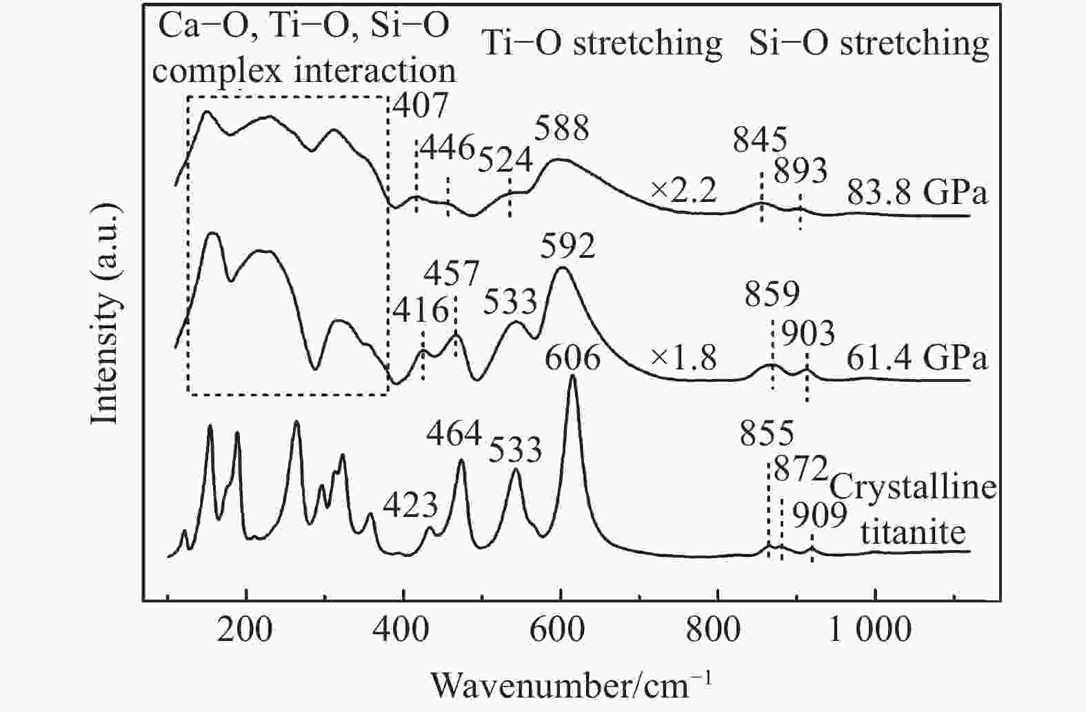 Pressure/GPa a/Å b/Å c/Å β/(o) V/Å3 wRp Rp C2 0 7.10 8.77 6.60 113.82 376.37 0.11 0.08 3.79 61.4 7.06 8.74 6.58 113.81 371.75 0.07 0.06 3.08 83.8 7.05 8.72 6.56 113.79 368.86 0.04 0.04 1.18 表 2 高压冲击和核辐照对榍石各基团的影响