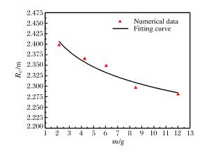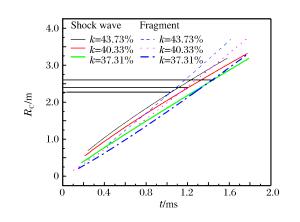 Distance/m Over pressure/MPa Error/% Test Numerical 2.5 0.356 0.3557 8.43 4.3 0.086 0.0912 6.05 6.2 0.04565 0.0489 7.12 8.0 0.0256 0.0241 5.86 10.0 0.0199 0.0217 9.05 表 8 战斗部及破片参数(L=260 mm,R=96 mm)