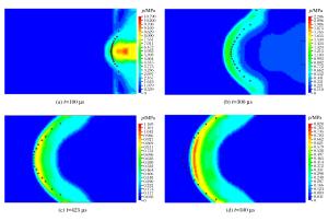 摘要: 为研究破片式战斗部爆炸后破片和冲击波两种毁伤元的相遇位置,先通过ANSYS/LS-DYNA对破片式战斗部的爆炸过程进行数值计算,再通过试验的方法测量破片和冲击波相遇位置,验证了数值计算方法的合理性。在此基础上,分析了装填系数、破片质量、爆速和爆热对相遇位置的影响。结果表明:随着装填系数、破片质量、爆速和爆热的增加,相遇位置减小;装填系数增加31%,相遇位置距爆炸中心的距离减小11.5%;单枚破片质量增加1倍,相遇位置距爆炸中心的距离减小2.4%。Abstract: In order to study the meeting location of fragments and shock waves after fragmentation warhead explosions, ANSYS/LS-DYNA was first used to numerically calculate the explosion process of the fragmented warhead, and then the location where fragments meet shock wave was experimentally determined, validating the numerical method.On the basis of above results, the influence of k, m, QV and QT on the meeting location was analyzed.The results show that the meeting location decreases with the increase of k, m, QV and QT.More precisely, the k increases by 31%, the distance between the meeting position and the explosion center decreases by 11.5%, the m is doubled, and the distance between the meeting position and the explosion center is reduced by 2.4%.