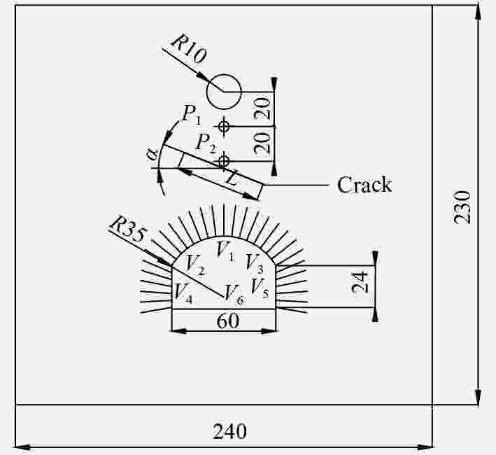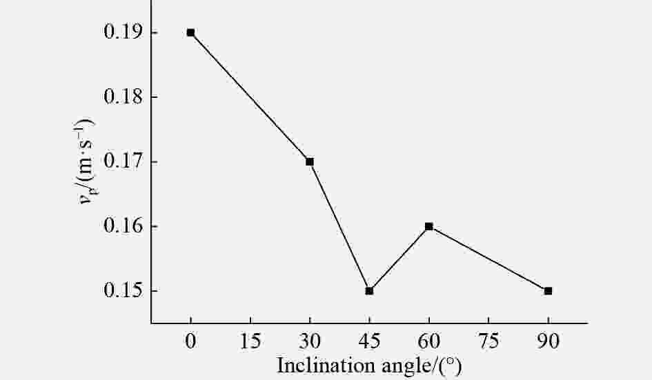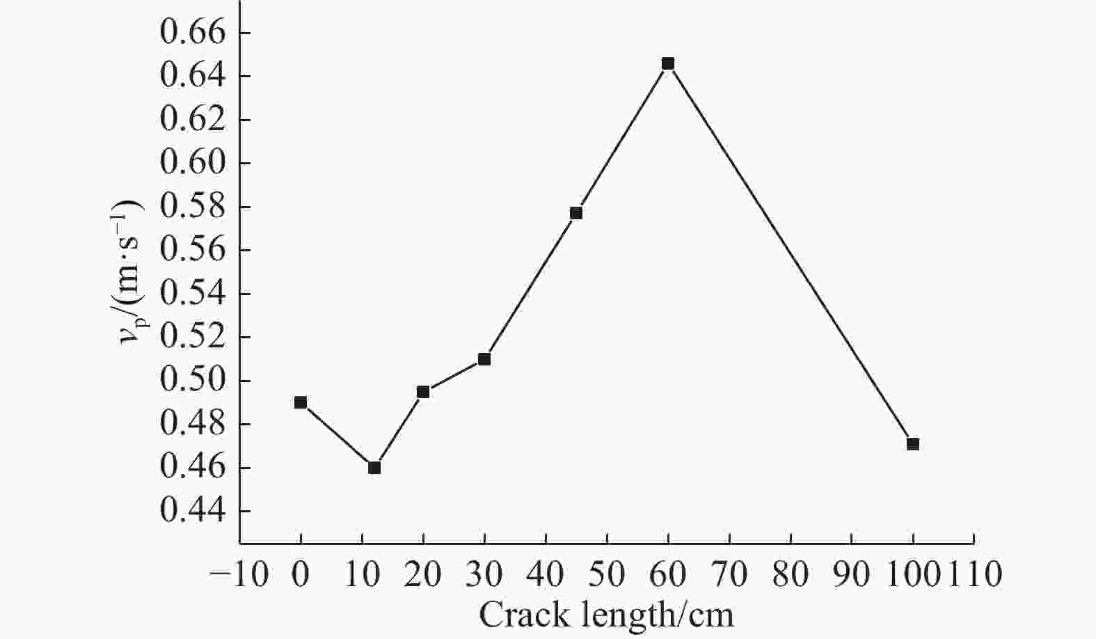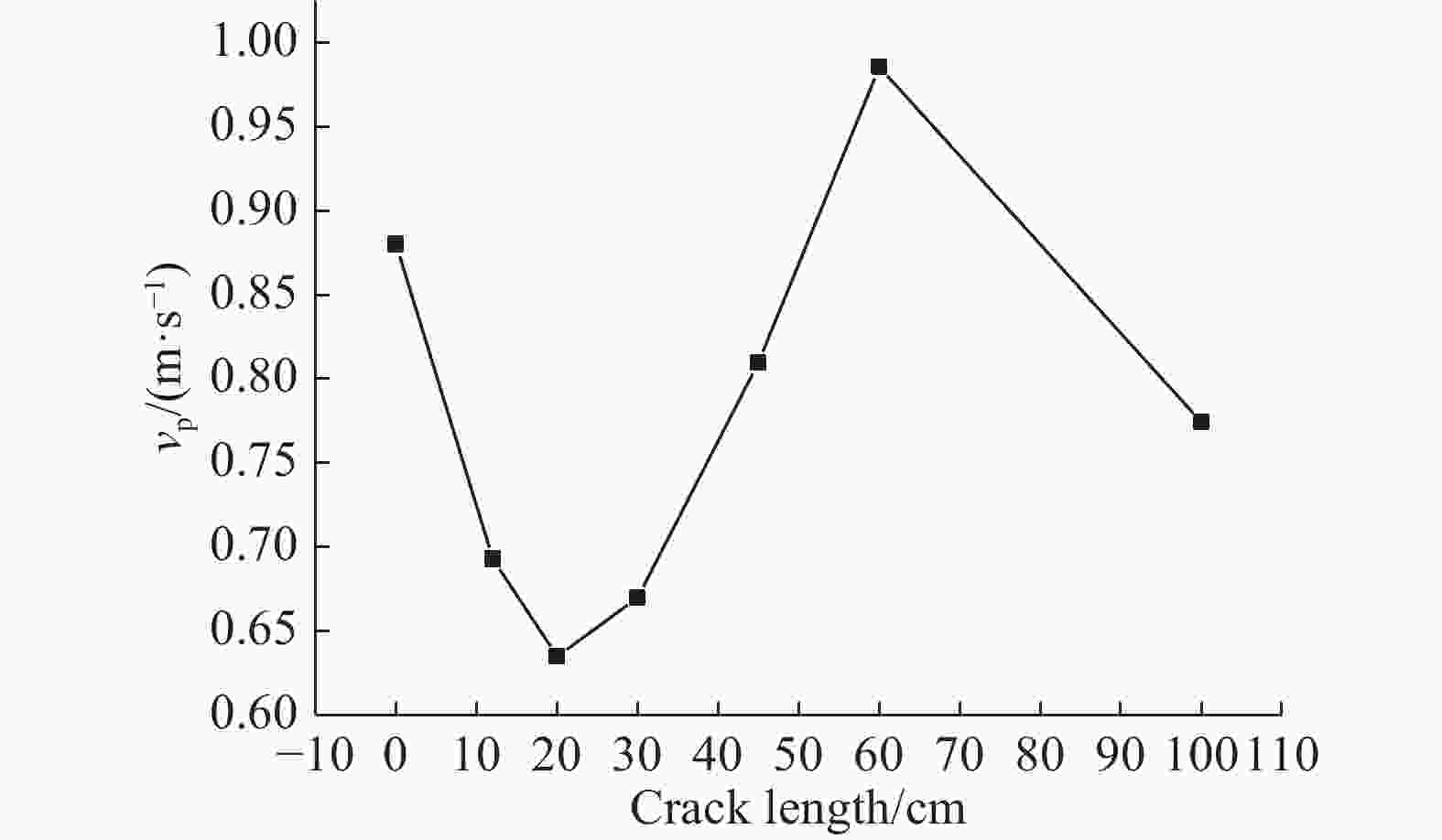 Inclination angle Particle peak vibration velocity/(m·s-1) Vault Left arch springing Right arch springing Left side wall Right side wall Floor Non-crack 1.64 0.88 0.88 0.49 0.49 0.15 0° 2.04 0.67 0.67 0.51 0.51 0.19 30° 1.25 0.51 0.57 0.43 0.44 0.17 45° 0.85 0.44 0.67 0.42 0.49 0.15 60° 0.96 0.53 0.76 0.42 0.52 0.16 90° 1.45 0.77 0.77 0.49 0.49 0.15 -