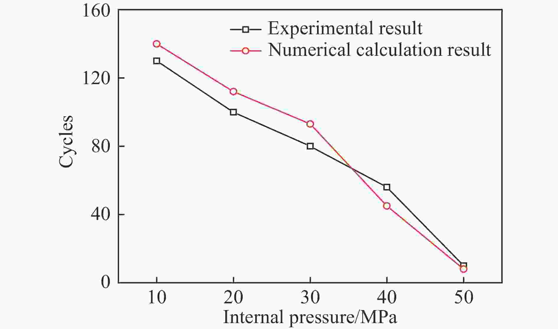 Internal pressure/MPa Experimental value/N Finite element value/N Error/% 65 50 45 10 65 49 45 8 65 52 45 13 表 3 内压、扭矩对连续管疲劳寿命的影响