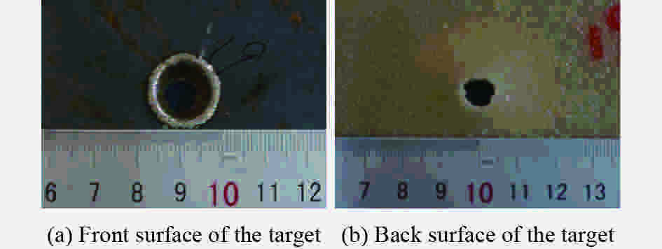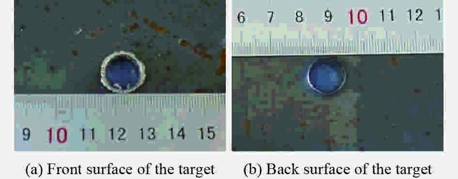 Material E/GPa ρ/(kg·m–3) ν σy/MPa σb/MPa δs/% 304 steel 220 7930 0.3 280 Q235 steel 210 7850 0.3 235 400–490 22 Polyurea 0.23 1020 0.4 14 162 表 3 弹体侵彻实验结果