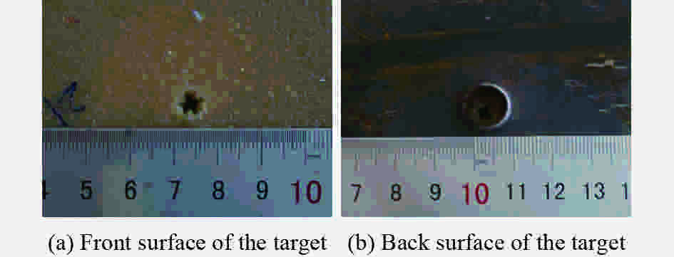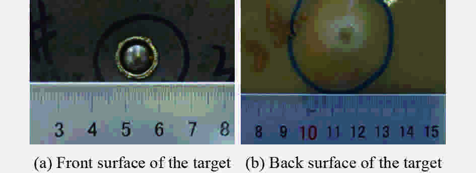 Case Front target Back target ρt/(kg·m–2) 1 4.0 mm steel 31.2 2 4.9 mm steel 39.0 3 4 mm steel 4 mm polyurea 35.28 4 4 mm polyurea 4 mm steel 35.28 5 4 mm steel 8 mm polyurea 39.36 6 8 mm polyurea 4 mm steel 39.36 表 2 材料参数