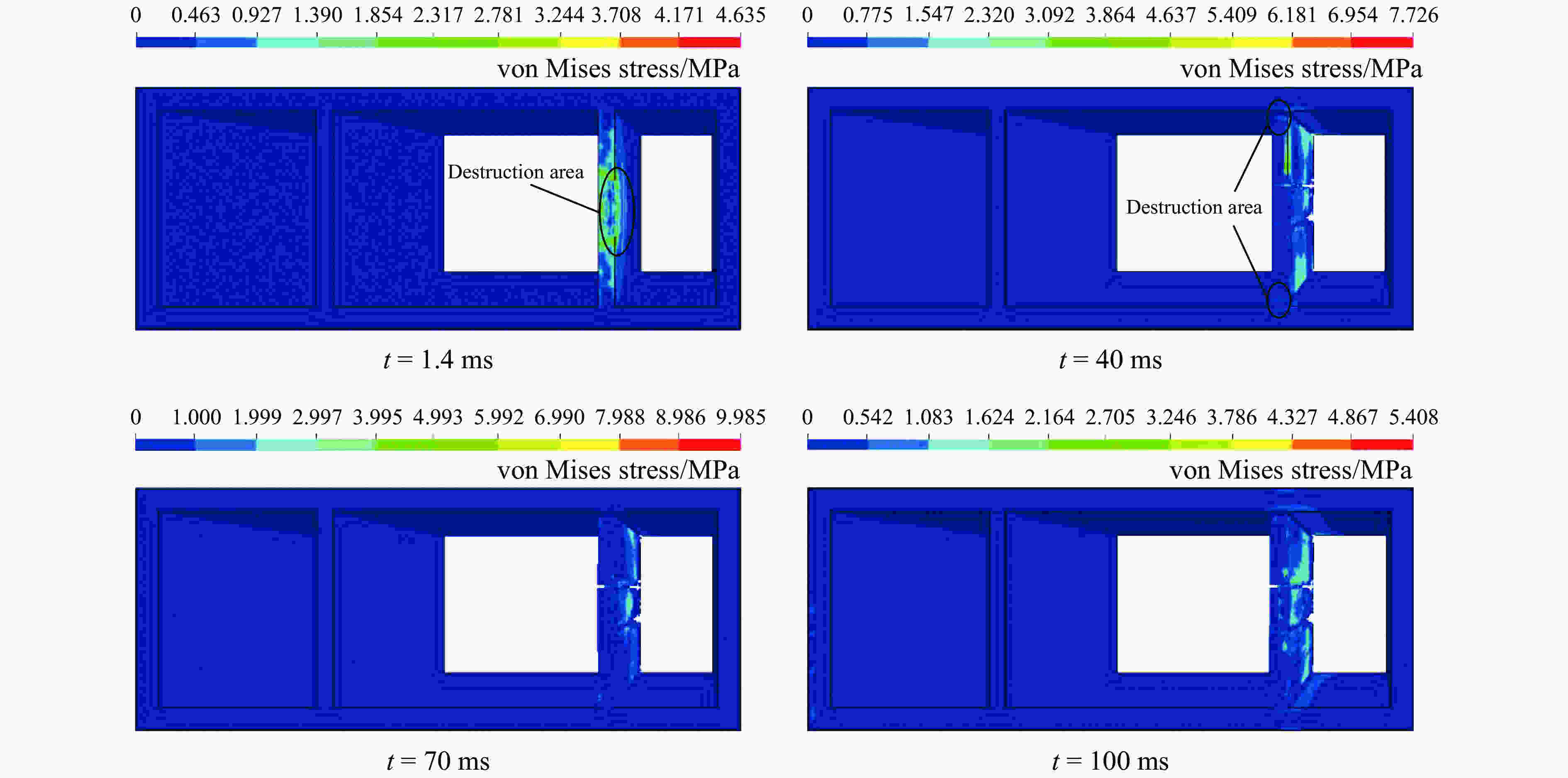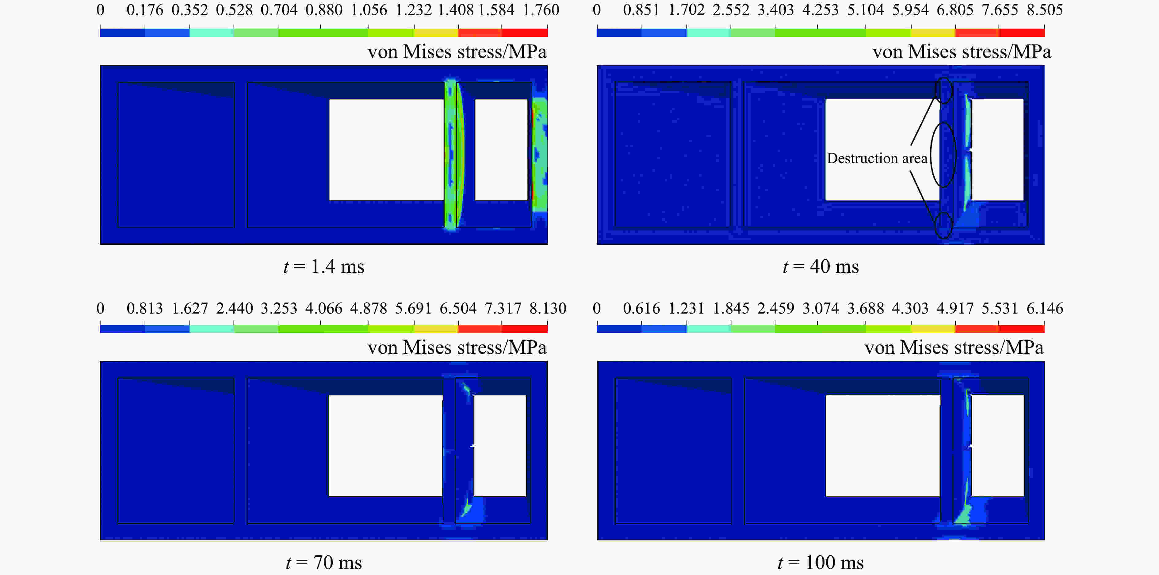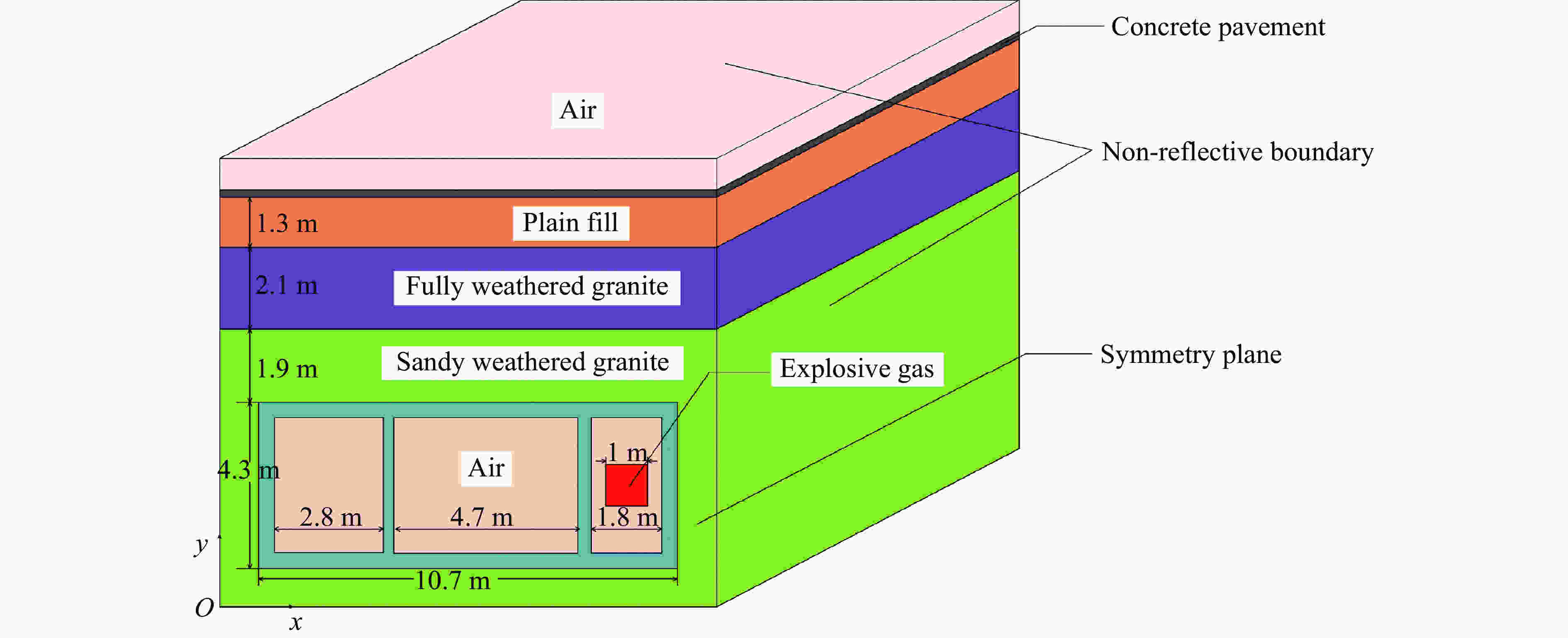 ratioPlain fill 130 1.8 6 10 0.0042 0.30 Completely decomposed granite 210 1.9 20 25 0.02 0.24 Sandy strongly weathered granite 620 2.0 30 32 54 0.21 Material $\rho $/(kg·m–3) C0/MPa C1 C2 C3 C4 C5 C6 E0/(MJ·m–3) V0 Air 1.234 –0.1 0 0 0 0.400 0.400 0 0.250 1.0 CH4-Air 1.293 0 0 0 0 0.274 0.274 0 3.408 1.0 表 3 混凝土和钢材料参数