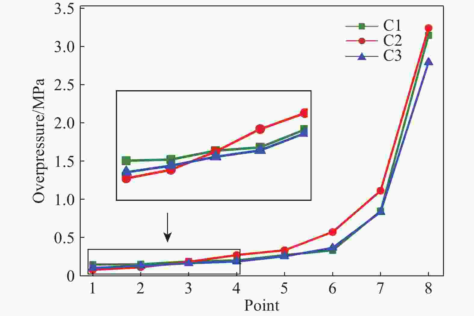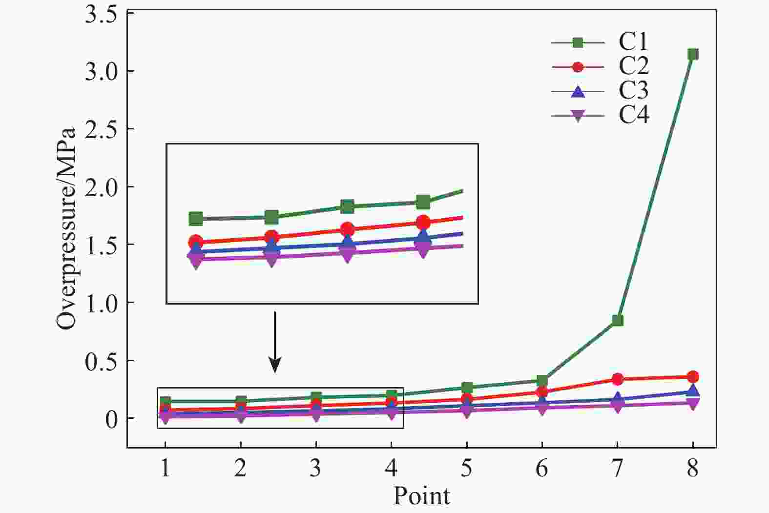 图  16  关键点在不同当量炸药情况下的峰值压力