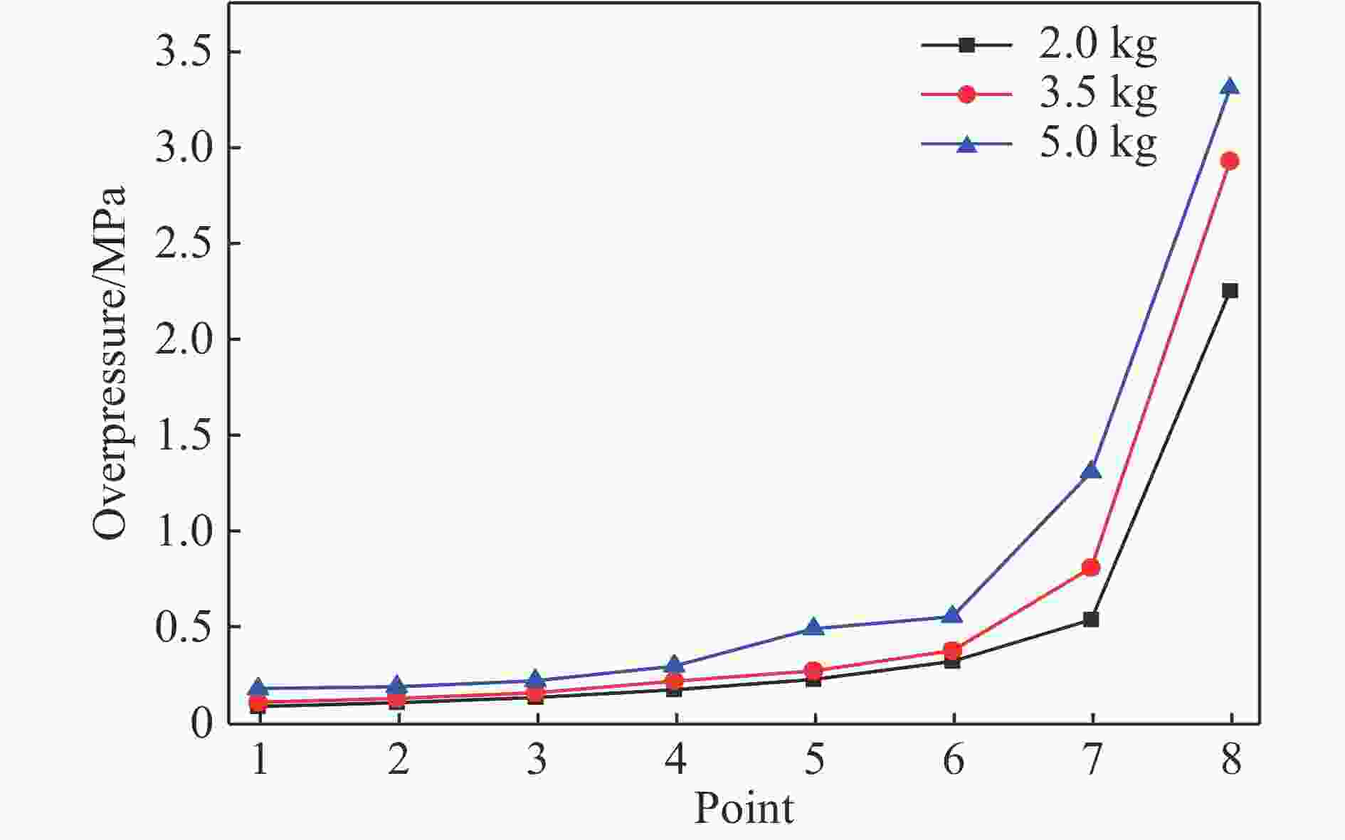 Figure  16.  Peak pressure at different positions with different explosive mass