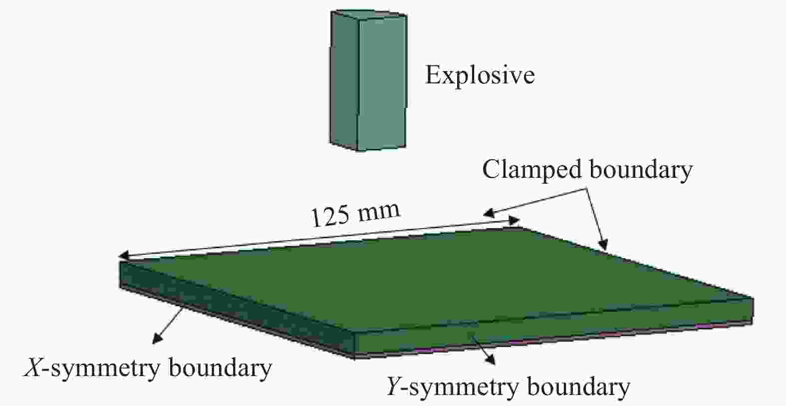 摘要: 在验证了所用方法有效性的基础上,采用有限元软件LS-DYNA数值模拟了等面密度聚脲涂覆钢板结构及单一钢板在空爆下的动态响应,分析了聚脲涂覆位置对其抗爆性的影响;在此基础上,通过量纲分析的方法讨论了爆心距、炸药质量、涂覆聚脲厚度对钢板变形的影响规律。结果表明,聚脲涂覆在钢板上的位置影响其抗爆性能。其他变量一定的情况下,钢板中心最大位移随爆心距的增加近似呈指数递减趋势;改变炸药质量时,钢板中心最大位移随炸药质量的增加近似呈线性递增趋势;改变涂覆聚脲厚度时,钢板中心最大位移随涂层厚度的增加近似呈线性递减趋势。Abstract: The dynamic response of the equivalent areal density polyurea-coated steel plate and a single steel plate under air blast loads is simulated by using the finite element software LS-DYNA after the validity of this method is demonstrated. The influence of polyurea coating position on its antiknock ability is analyzed; Besides, the method of dimension analysis is employed to study the response of the distance between explosive and steel plate, spherical charge’s quality, and the polyurea layer thickness on the deformation of steel plates based on the prior study. The results show that the position of polyurea coated on steel plate affects its antiknock performance. When other variables are assumed to be constant, the maximum displacement of the center of the steel plate exponentially decreased with the increase of the distance between the distance between explosive and steel plate; Moreover, when the quality of the explosive is changed, the maximum displacement of the steel plate increases linearly with the increase of the explosive mass; Also, when the thickness of the coated polyurea is changed, the maximum displacement of the steel sheet decreases linearly with the increase of the thickness of the coating.