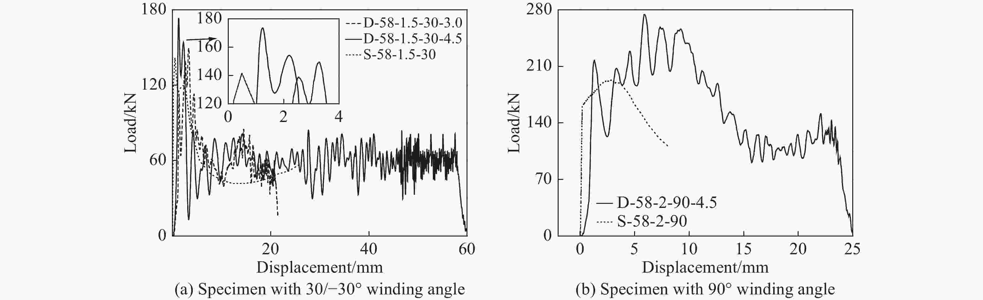 Specimen D/mm t/mm [$\theta$/(°)]n tc/mm L/mm Displacement/mm Loading speed/(m·s−1)
