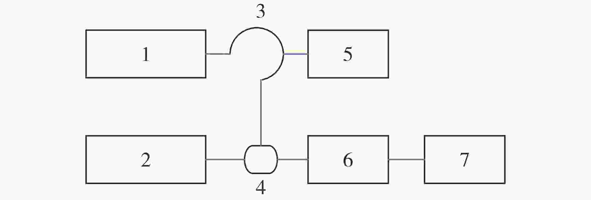 Figure  3.  Schematic diagram of compensation channel (1. Signal laser; 2. Reference laser; 3. Circulator; 4. Combiner; 5. Reflector; 6. Detector; 7. Oscilloscope)