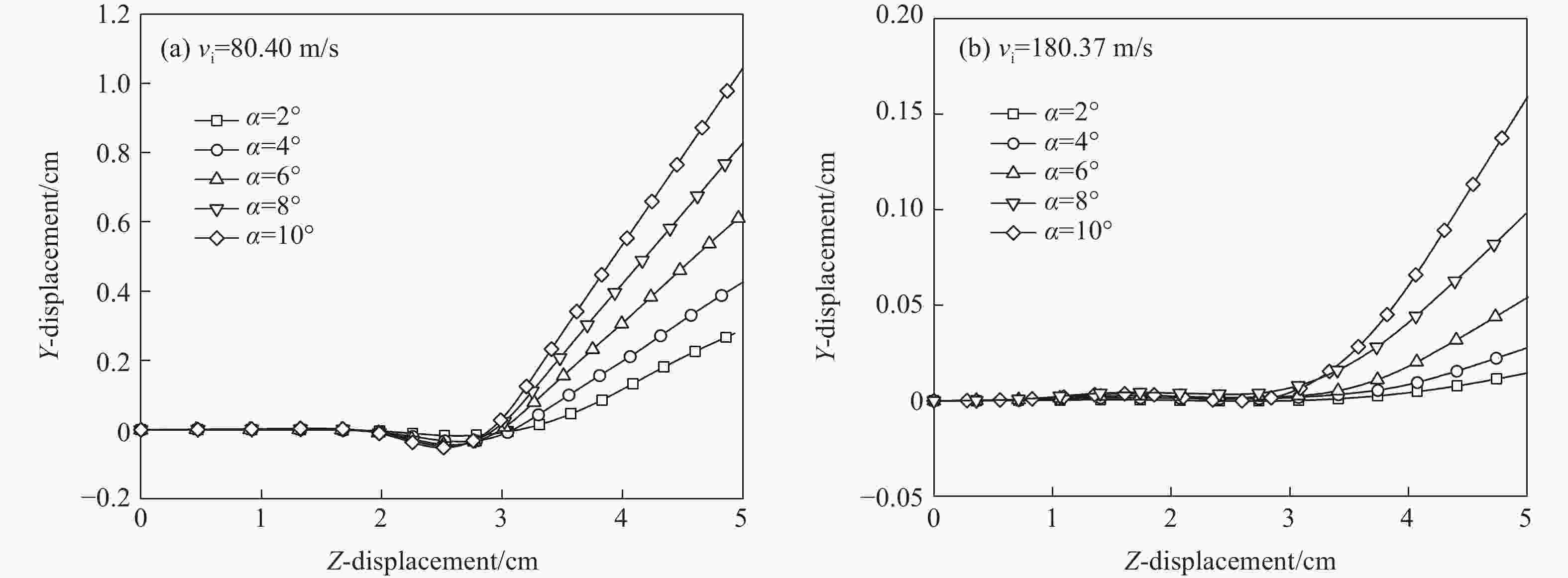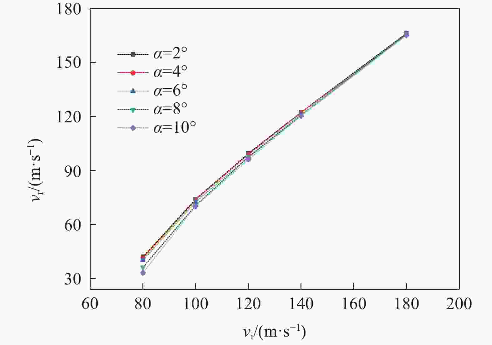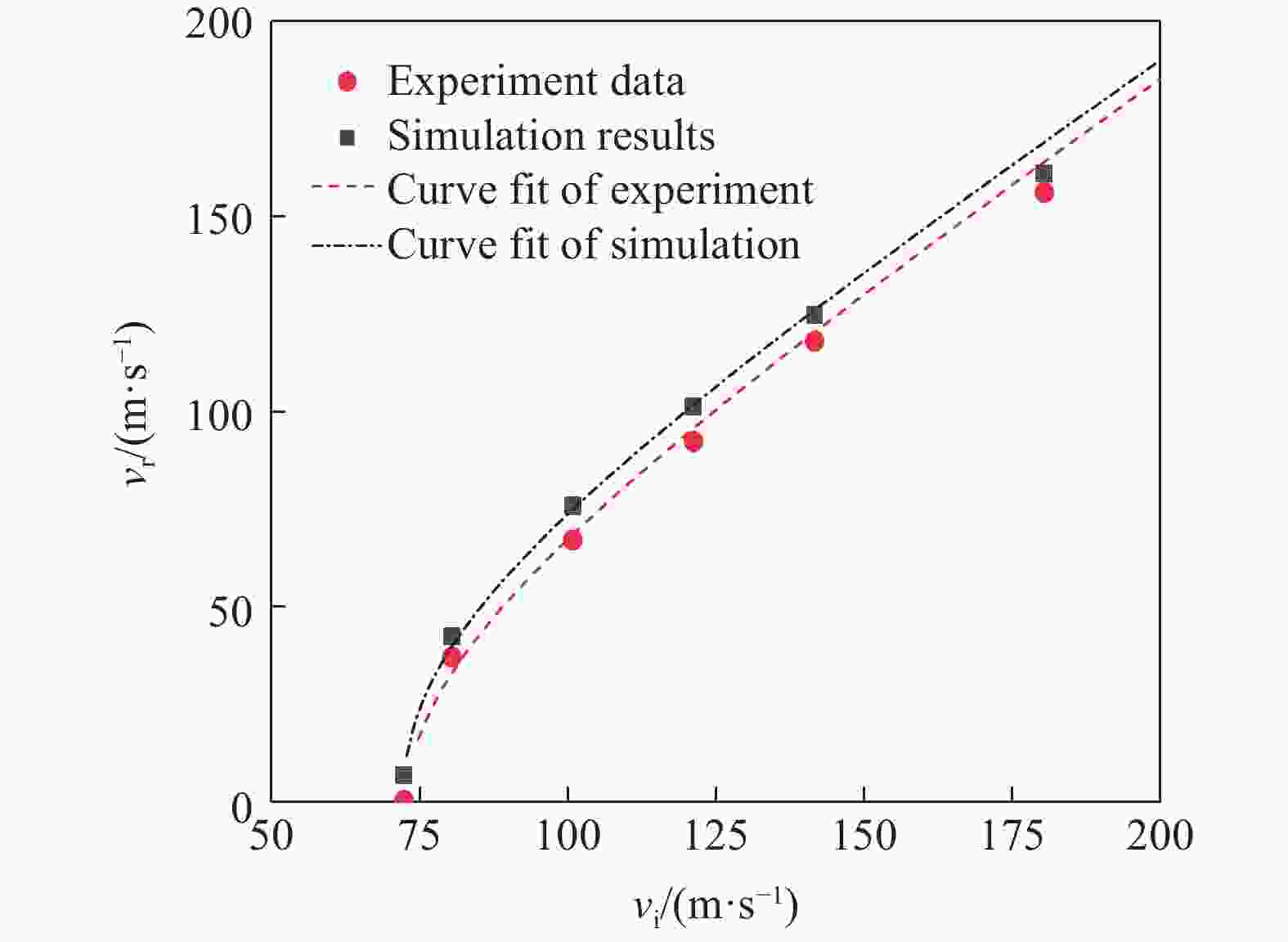vi/(m·s–1) vr/(m·s–1) Experiment results[13] Simulation results 72.32 0.43 6.81 80.40 37.09 42.28 100.84 67.13 75.84 121.22 92.37 101.26 141.67 118.10 124.77 180.37 156.24 160.99 表 3 模型参数及弹道极限