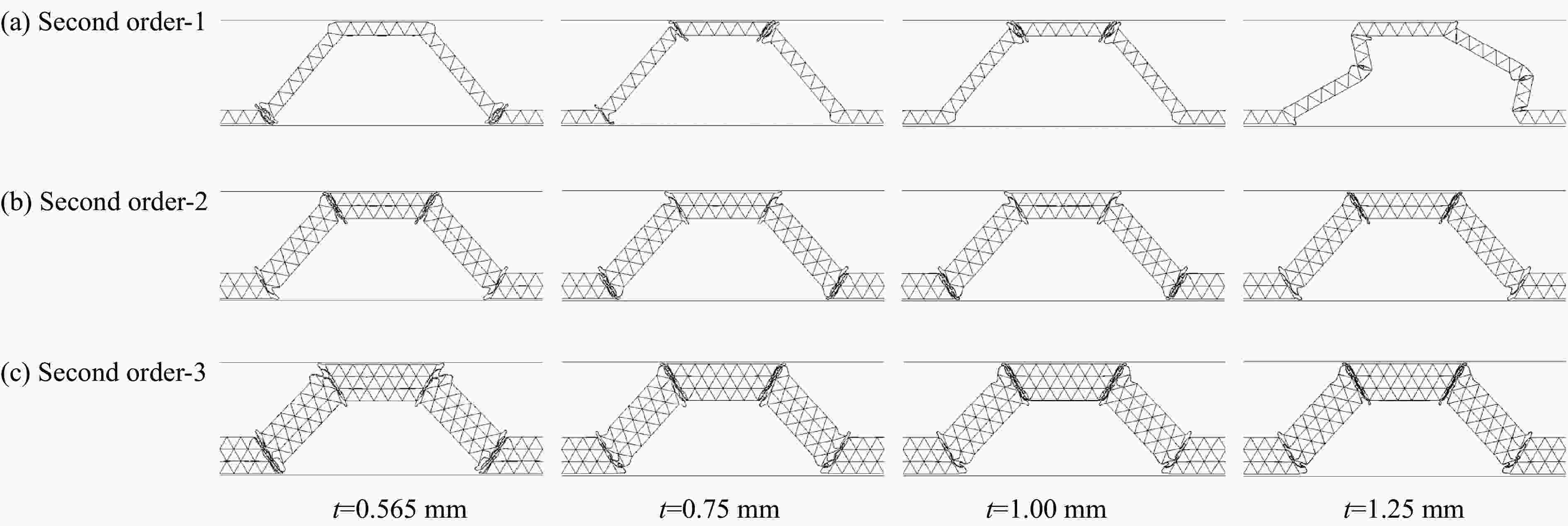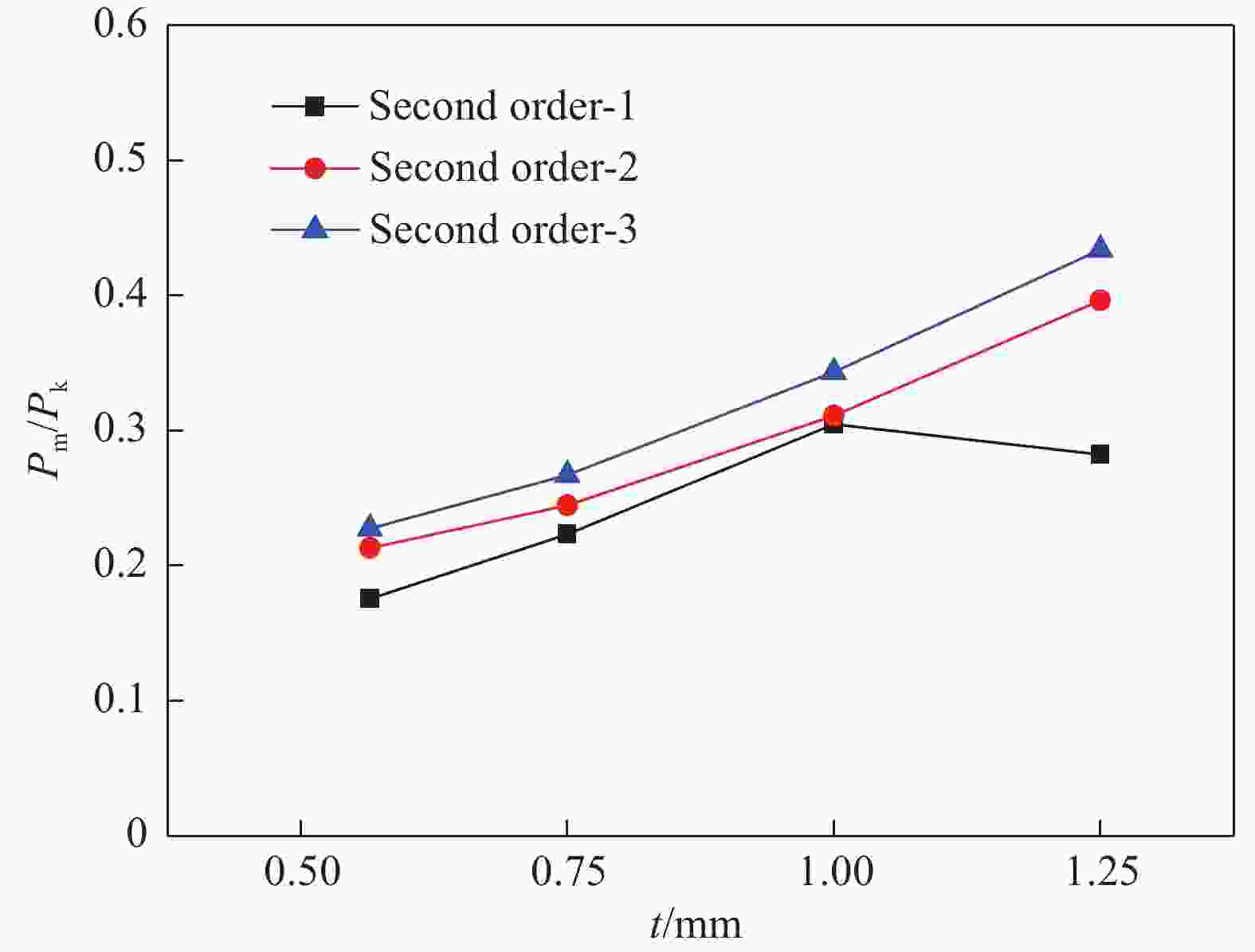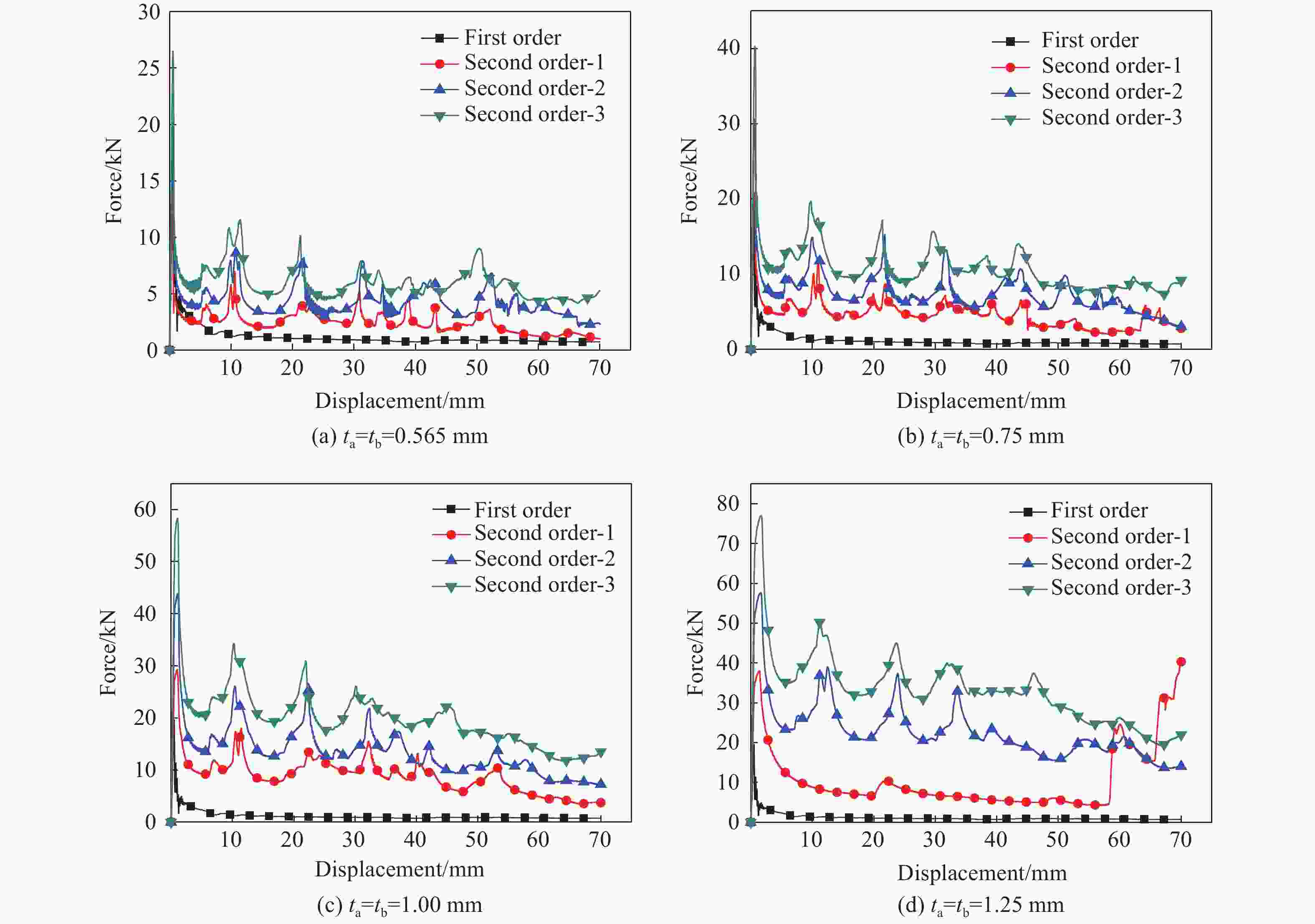 Type l/mm la/mm lb/mm ta/mm tb/mm ${ \theta }$/(°) ${ \omega }$/(°) First order 50 100 2 60 Second order-1 50 100 10 0.565/0.75/1.00/1.25 0.565/0.75/1.00/1.25 60 60 Second order-2 50 100 10 0.565/0.75/1.00/1.25 0.565/0.75/1.00/1.25 60 60 Second order-3 50 100 10 0.565/0.75/1.00/1.25 0.565/0.75/1.00/1.25 60 60 -