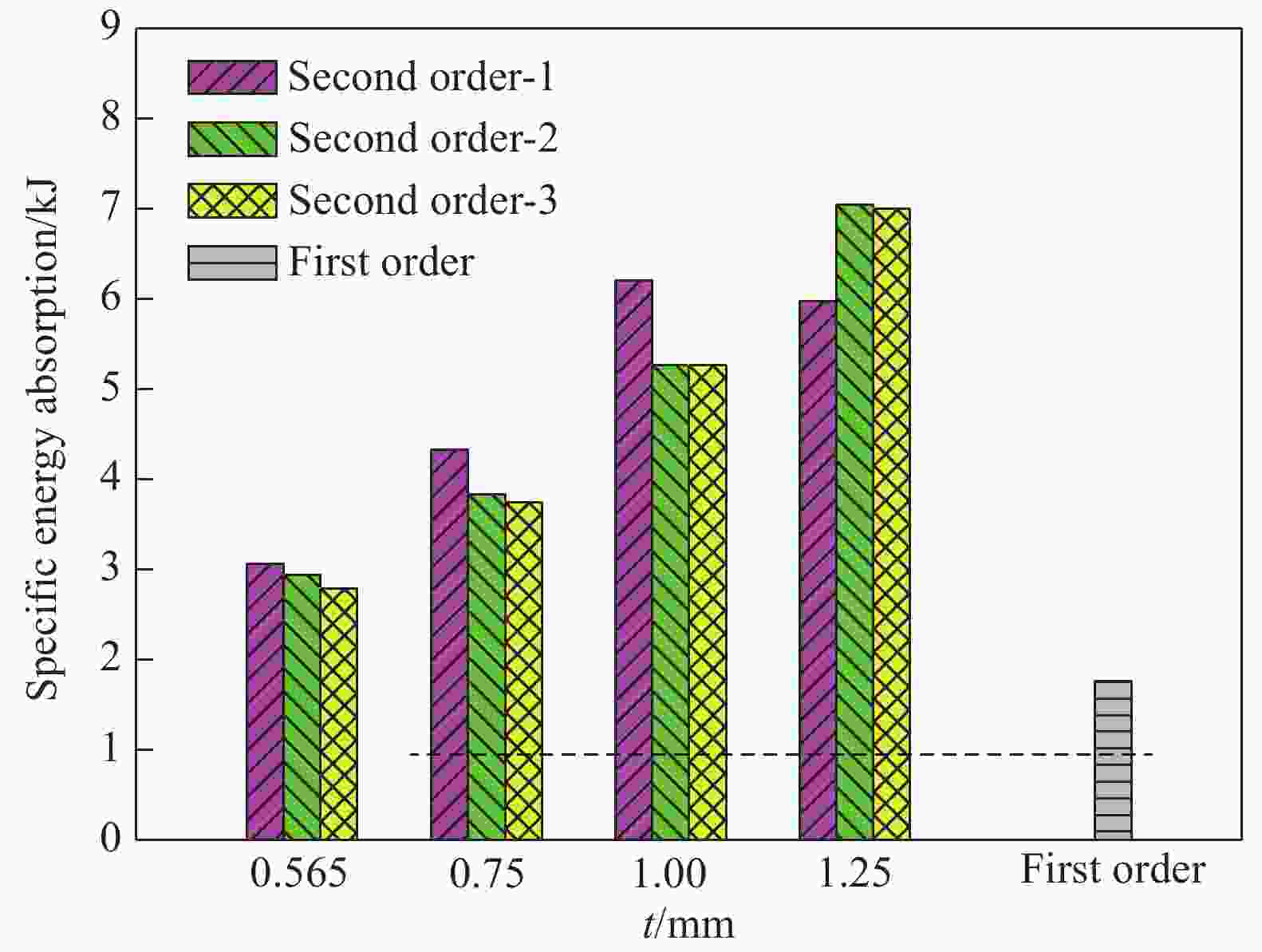 [1] LAKES R. Materials with structural hierarchy [J]. Nature, 1993, 361(6412): 511–515. doi: 10.1038/361511a0 [2] ZHANG J, SUPERNAK P, MUELLER-ALANDER S, et al. Improving the bending strength and energy absorption of corrugated sandwich composite structure [J]. Materials & Design, 2013, 52(24): 767–773. [3] HE W, LIU J, TAO B, et al. Experimental and numerical research on the low velocity impact behavior of hybrid corrugated core sandwich structures [J]. Composite Structures, 2016, 158: 30–43. doi: 10.1016/j.compstruct.2016.09.009 [4] HOU S, SHU C, ZHAO S, et al. Experimental and numerical studies on multi-layered corrugated sandwich panels under crushing loading [J]. Composite Structures, 2015, 126: 371–385. doi: 10.1016/j.compstruct.2015.02.039 [5] MEZA L R, ZELHOFER A J, CLARKE N, et al. Resilient 3D hierarchical architected metamaterials [J]. Proceedings of the National Academy of Sciences, 2015, 112(37): 11502–11507. doi: 10.1073/pnas.1509120112 [6] KOOISTRA G, DESHPANDE V, WADLEY H. Hierarchical corrugated core sandwich panel concepts [J]. Journal of Applied Mechanics, 2007, 74(2): 259–268. doi: 10.1115/1.2198243 [7] VELEA M N, SCHNEIDER C, LACHE S. Second order hierarchical sandwich structure made of self-reinforced polymers by means of a continuous folding process [J]. Materials & Design, 2016, 102: 313–320. [8] WU Q, GAO Y, WEI X, et al. Mechanical properties and failure mechanisms of sandwich panels with ultra-lightweight three-dimensional hierarchical lattice cores [J]. International Journal of Solids and Structures, 2017, s132/s133: 171–187. [9] WU Q, ASHKAN V, MOHAMAD E A, et al. Lattice materials with pyramidal hierarchy: systematic analysis and three dimensional failure mechanism maps [J]. Journal of the Mechanics and Physics of Solids, 2019, 125: 112–114. doi: 10.1016/j.jmps.2018.12.006 [10] LIU H, CHEN L, DU B, et al. Flatwise compression property of hierarchical thermoplastic composite square lattice [J]. Composite Structures, 2019, 210: 118–133. doi: 10.1016/j.compstruct.2018.11.047 [11] 王志华, 朱峰, 赵隆茂. 多孔金属夹芯结构动力学行为及其应用 [M]. 北京: 兵器工业出版社, 2010: 1–27.WANG Z H, ZHU F, ZHAO L M. Dynamic behavior and application of sandwich structures with cellular metal cores [M]. Beijing: The Publishing House of Ordnance Industry, 2010: 1–27. [12] JING L, WANG Z, ZHAO L. The dynamic response of sandwich panels with cellular metal cores to localized impulsive loading [J]. Composites Part B, 2016, 94: 52–63. doi: 10.1016/j.compositesb.2016.03.035 [13] CHEN Y, JIA Z, WANG L. Hierarchical honeycomb lattice metamaterials with improved thermal resistance and mechanical properties [J]. Composite Structures, 2016, 152: 395–402. doi: 10.1016/j.compstruct.2016.05.048 [14] CHEN Y, LI T, JIA Z, et al. 3D printed hierarchical honeycombs with shape integrity under large compressive deformations [J]. Materials & Design, 2018, 137: 226–234. [15] YIN H, HUANG X, SCARPA F, et al. In-plane crashworthiness of bio-inspired hierarchical honeycombs [J]. Composite Structures, 2018, 192: 516–527. doi: 10.1016/j.compstruct.2018.03.050 [16] QIAO J, CHEN C. In-plane crushing of a hierarchical honeycomb [J]. International Journal of Solids & Structures, 2012, 85/86: 57–66. [17] 方耀楚. 二级层级褶皱结构力学性能研究与优化设计 [D]. 大连: 大连理工大学, 2014: 25–47.FANG Y C. Mechanical properties and optimal design of hierarchical corrugated structure with the second order [D]. Dalian: Dalian University of Technology, 2014: 25–47. [18] 田泽, 韩阳, 尹晓文, 等. 截面几何参数对帽型梁轴向冲击响应的影响 [J]. 高压物理学报, 2018, 32(5): 94–101. doi: 10.11858/gywlxb.20180521TIAN Z, HAN Y, YIN X W, et al. Effect of sectional geometrical parameters on axial impact responses of hat-section beam [J]. Chinese Journal of High Pressure Physics, 2018, 32(5): 94–101. doi: 10.11858/gywlxb.20180521 [19] SANTOSA S P, WIERZBICKI T. Experimental and numerical studies of foam-filled sections [J]. International Journal of Impact Engineering, 2000, 24(5): 509–534. doi: 10.1016/S0734-743X(99)00036-6 [20] 宋宏伟, 范子杰, 虞钢. 几类典型耐撞性结构吸能性能的比较[C]//2004汽车安全技术国际研讨会暨汽车安全技术学术年会, 2004. -