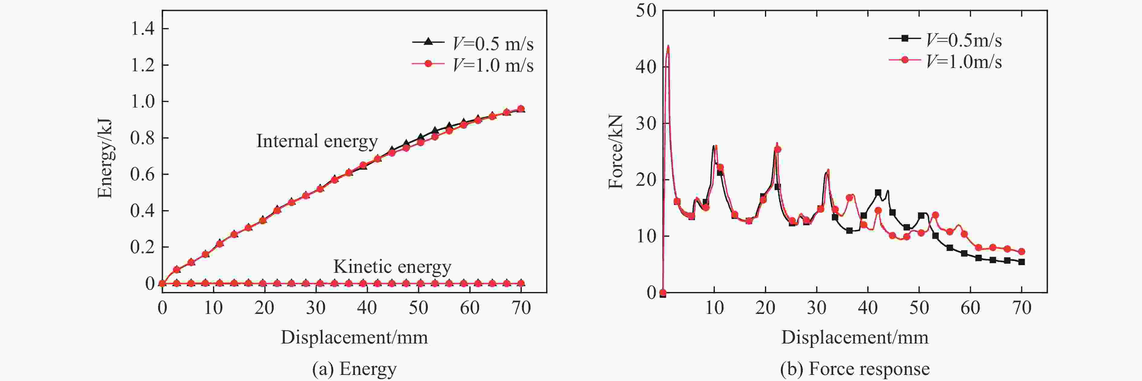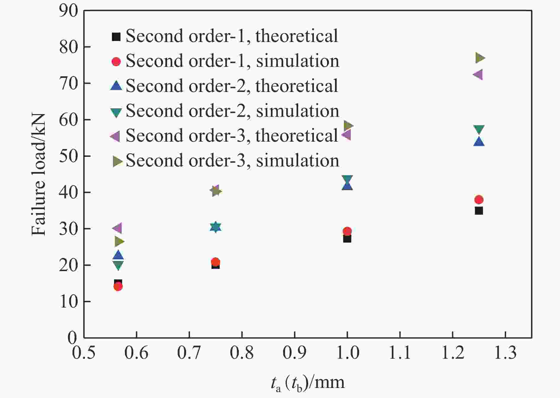 摘要: 采用数值模拟与理论分析相结合的方法研究了多层级波纹板夹芯结构在准静态压缩载荷下的变形规律与能量吸收性能,建立了结构临界失效载荷的计算公式,并与数值模拟结果进行了对比,理论预测与数值模拟结果吻合较好。分析了芯层厚度对二级芯层结构在压缩载荷下的变形模式及能量吸收性能的影响,并与一级结构进行了对比。结果表明:二级芯层结构的能量吸收性能显著优于一级芯层结构;随着结构芯层厚度增加,二级结构的比吸能和载荷效率增大;芯层厚度较小时二级单层结构的比吸能高于二级双层和三层结构,二级双层结构的比吸能略高于二级三层结构。Abstract: The deformation law and energy absorption performance of the multi-hierarchical sandwich structure under quasi-static compression have been studied by numerical and theoretical methods. The calculation formula of the critical failure load of the structure is established and compared with the numerical simulation results. The theoretical prediction is in good agreement with the numerical simulation results. Finite element models of the hierarchical corrugated core sandwich structure were established. The effects of core thickness on the deformation mode and energy absorption performance of secondary structure under quasi-static compression load were studied and compared with that of the primary structure.The results show that the energy absorption properties of the secondary core structure are significantly better than that of the primary core layer. As the thickness of the core increases, the specific energy absorption of the second order structure for single-layer is higher than that of the second order structure for two-layers and three-layers, and the specific energy absorption of the second order structure for two-layers is slightly higher than that of the second order structure for three-layers.