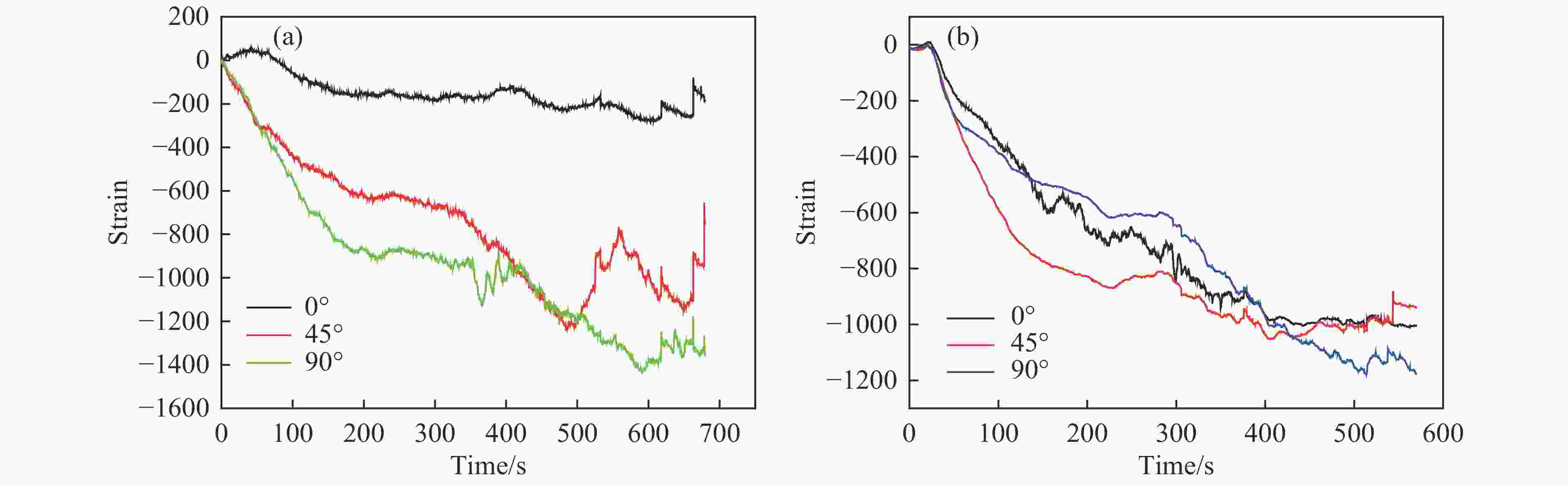 Media Cycling rate Minimum pressure/MPa Rising pressure time/s Minimum pressure holding time/s Water 7.8 2 3.1 2 Temperature/℃ Cycle times Maximum pressure/MPa Pressure drop time/s Maximum pressure holding time/s 11.2 5700 25 0.6 2 表 3 不同纤维缠绕压力容器在不同压力下的最大应变