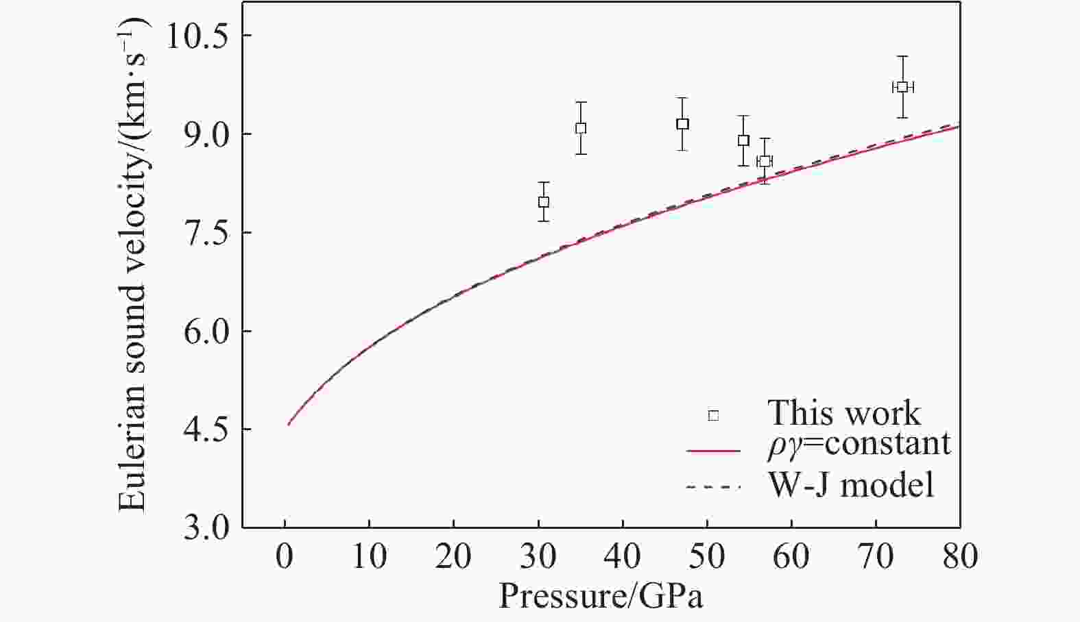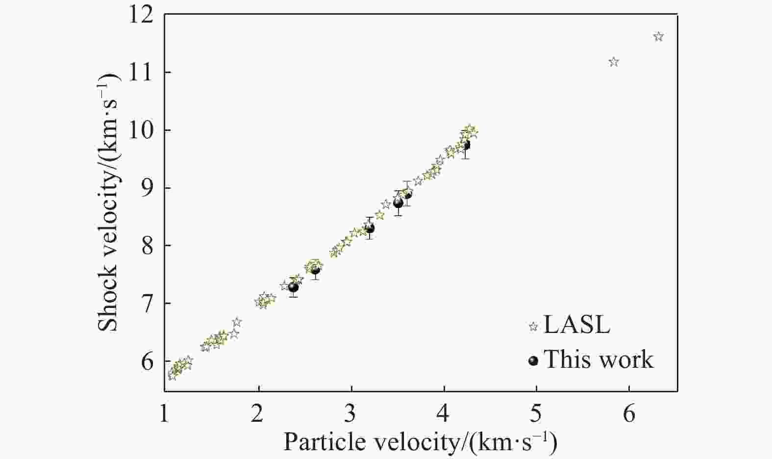 Exp.No. hs/mm W/(km·s–1) uw/(km·s–1) us/(km·s–1) Ds/(km·s–1) p/GPa Cl/(km·s–1) 1 1.980±0.004 3.949±0.020 1.589±0.016 2.360±0.026 7.303±0.166 30.6±0.4 7.983±0.297 2 1.997±0.004 4.358±0.020 1.763±0.018 2.595±0.027 7.607±0.175 35.0±0.5 9.101±0.394 3 1.978±0.004 5.379±0.027 2.195±0.022 3.184±0.030 8.317±0.191 47.0±0.7 9.167±0.402 4 1.981±0.004 5.928±0.030 2.435±0.024 3.493±0.039 8.746±0.214 54.2±0.9 8.912±0.380 5 1.981±0.004 6.100±0.030 2.514±0.025 3.586±0.039 8.907±0.213 56.7±0.9 8.601±0.348 6 1.987±0.004 7.220±0.036 3.003±0.030 4.217±0.050 9.747±0.245 73.0±1.2 9.723±0.463 -