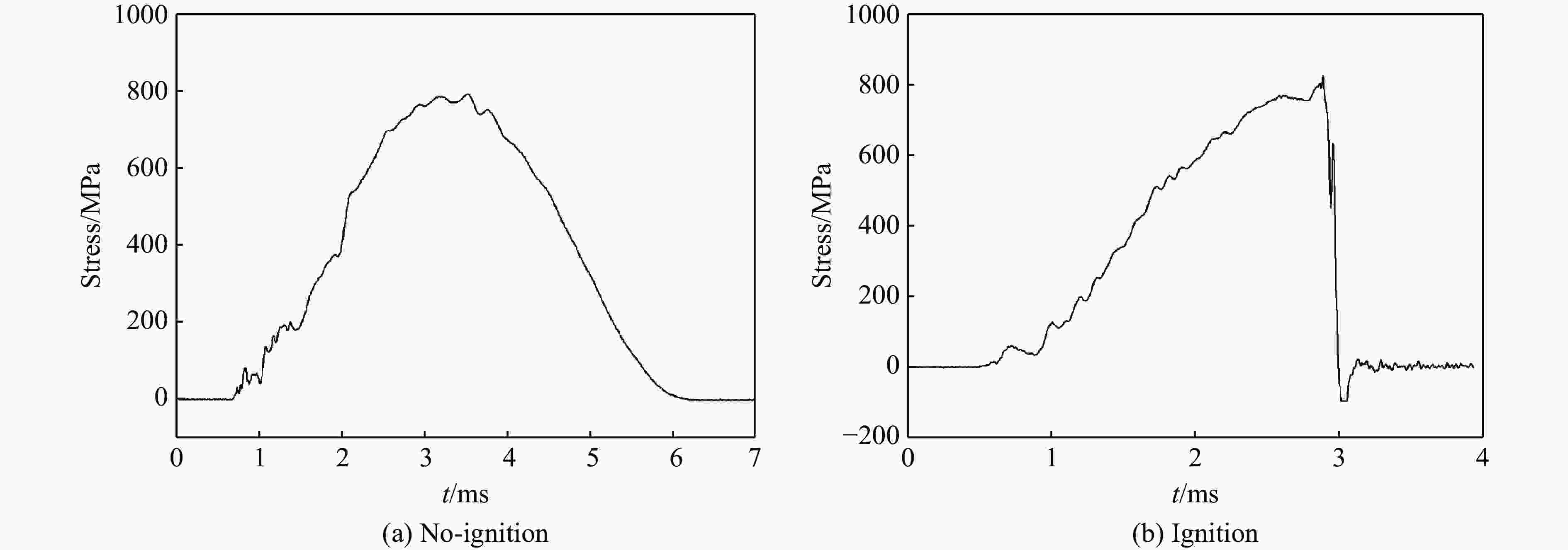 No. h/m σ/MPa t/ms Response characteristics 1 2.2 829 5.54 No-ignition 2 2.2 827 6.01 No-ignition 3 2.3 839 5.55 No-ignition 4 2.3 837 5.54 No-ignition 5 2.5 881 5.63 No-ignition 6 2.5 875 5.82 No-ignition 7 2.7 902 5.77 No-ignition 8 2.7 895 5.57 No-ignition 表 2 冲击波超压峰值及比冲量