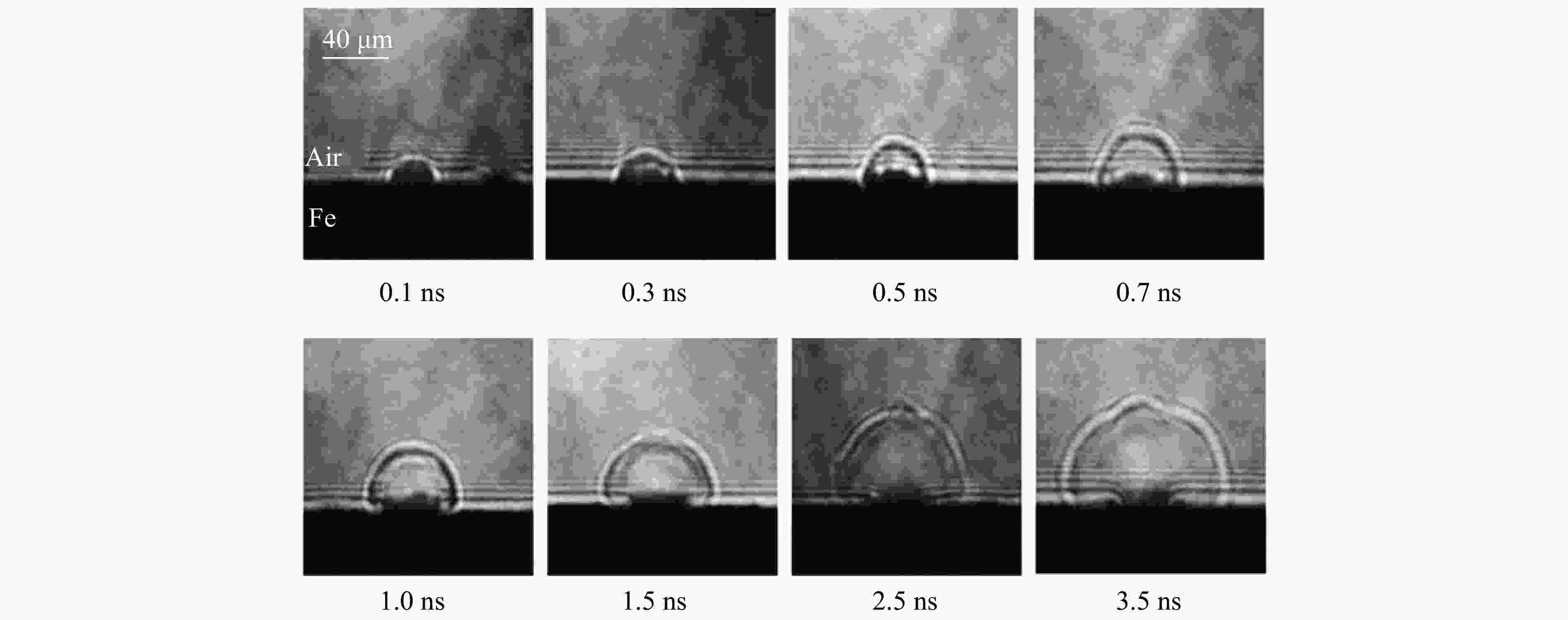 图  飞秒激光烧蚀金属Fe表面冲击波膨胀成像