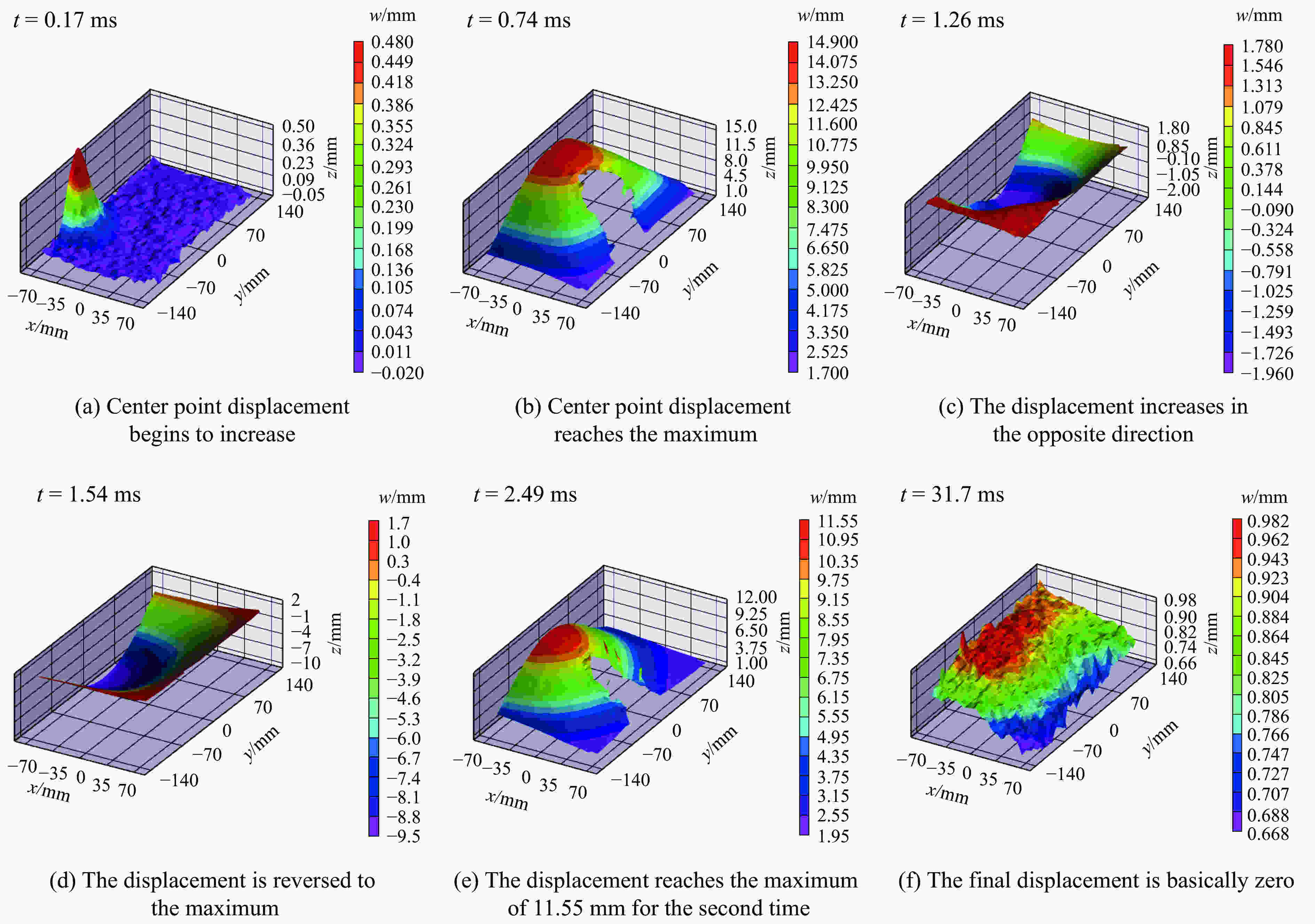 摘要: 针对3种不同铺层的碳纤维复合材料层合板,设计了开放式爆炸加载实验,研究不同的炸药质量和爆炸距离下层合板的动态力学行为。基于两台高速相机,搭建了高速三维变形场的实验测量系统,记录层合板在爆炸作用下动态变形过程。通过三维数字图像相关方法(3D-DIC)软件计算得到层合板在冲击波作用下的动态位移场和应变场。研究发现:层合板在弱冲击波作用下只发生弹性变形,正交铺层和准均质铺层均表现出良好的抗冲击能力;在强冲击波作用下层合板会产生分层、基体开裂、纤维断裂等形式的损伤,铺层顺序对损伤形式有很大影响。