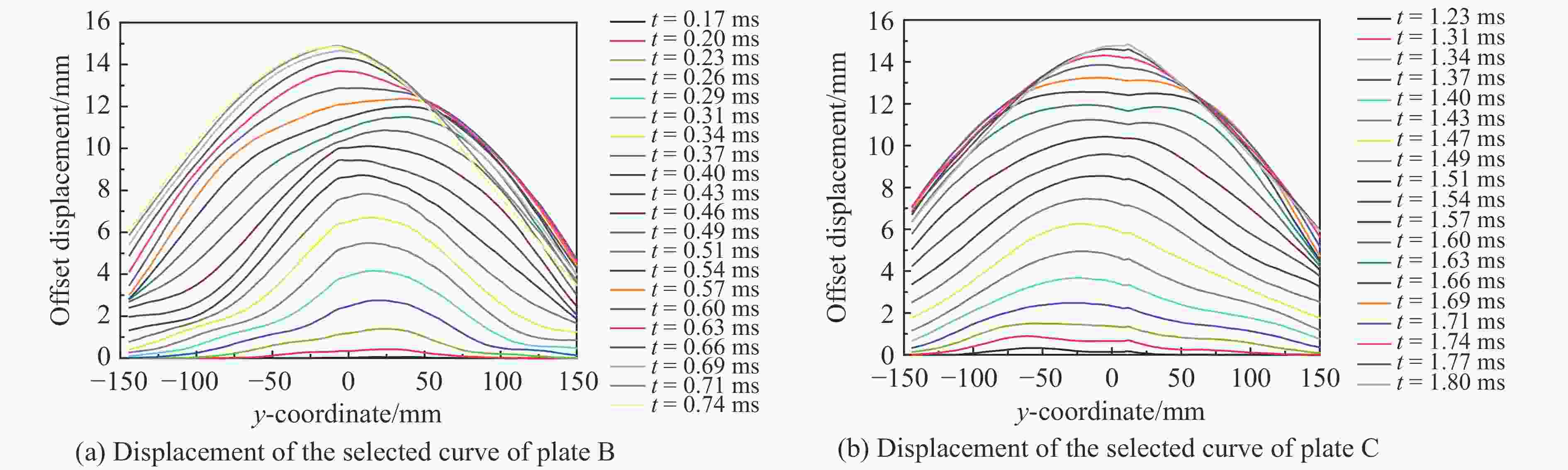 Abstract: An open explosion loading experiment was designed for three differently laminated carbon fiber composite laminates to study the dynamic mechanical behavior of the laminates under different explosive masses and explosive distances. Based on two high-speed cameras, an experimental measurement system for high-speed three-dimensional deformation field was built, and the images of the dynamic deformation process of the laminates under the action of the explosion were recorded. The dynamic displacement field and strain field of the laminates under the shock wave were calculated by 3D-DIC software. The results show that the laminates only undergo elastic deformation under low shock wave, and the orthogonal layer and the quasi-homogeneous layer have good impact resistance; under the action of high shock wave, the laminates will cause damage in the form of delamination, matrix cracking, fiber breakage, etc. The order of the layup has a great influence on the form of damage.-