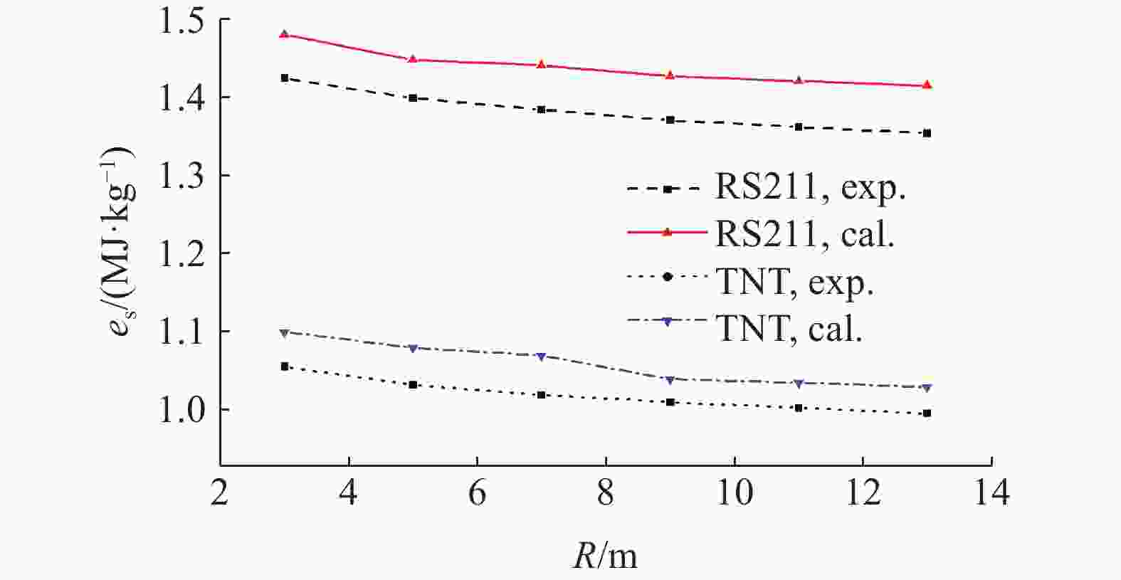 Explosive Tb/ms Eb/MJ eb/(MJ·kg–1) eb/eb, TNT Exp. Cal. Exp. Cal. Exp. Cal. Exp. Cal. RS211 273.33 266.89 9.441 7 8.789 9 3.059 5 2.846 5 1.52 1.48 TNT 235.99 232.56 6.097 2 5.815 6 2.017 2 1.928 9 1.00 1.00 -