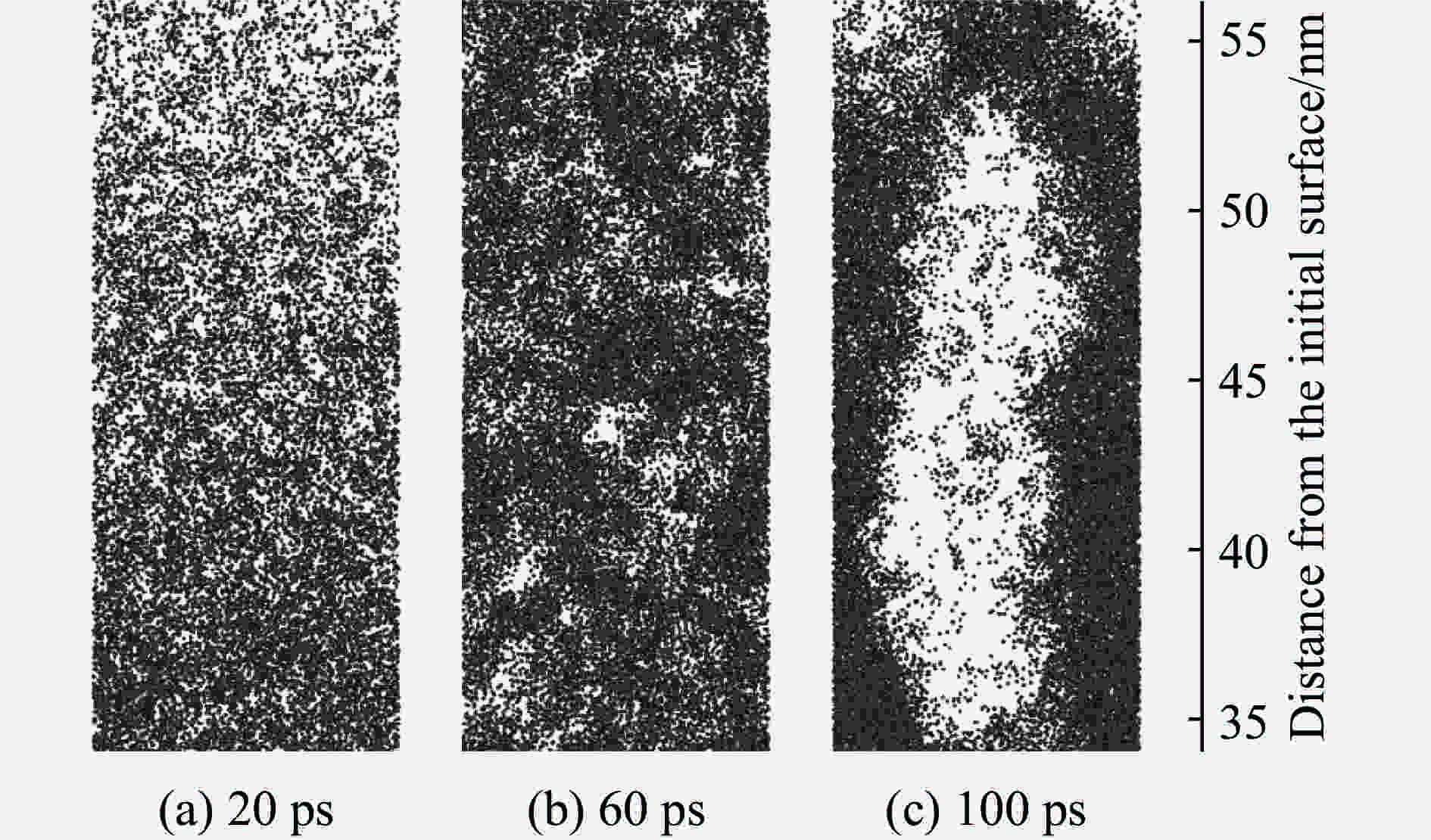 图 10 双温模型模拟中能量密度为298 mJ/cm2(接近相爆炸阈值)、脉冲宽度为200 fs的激光辐照大块Cr靶时得到的原子构型图[87]