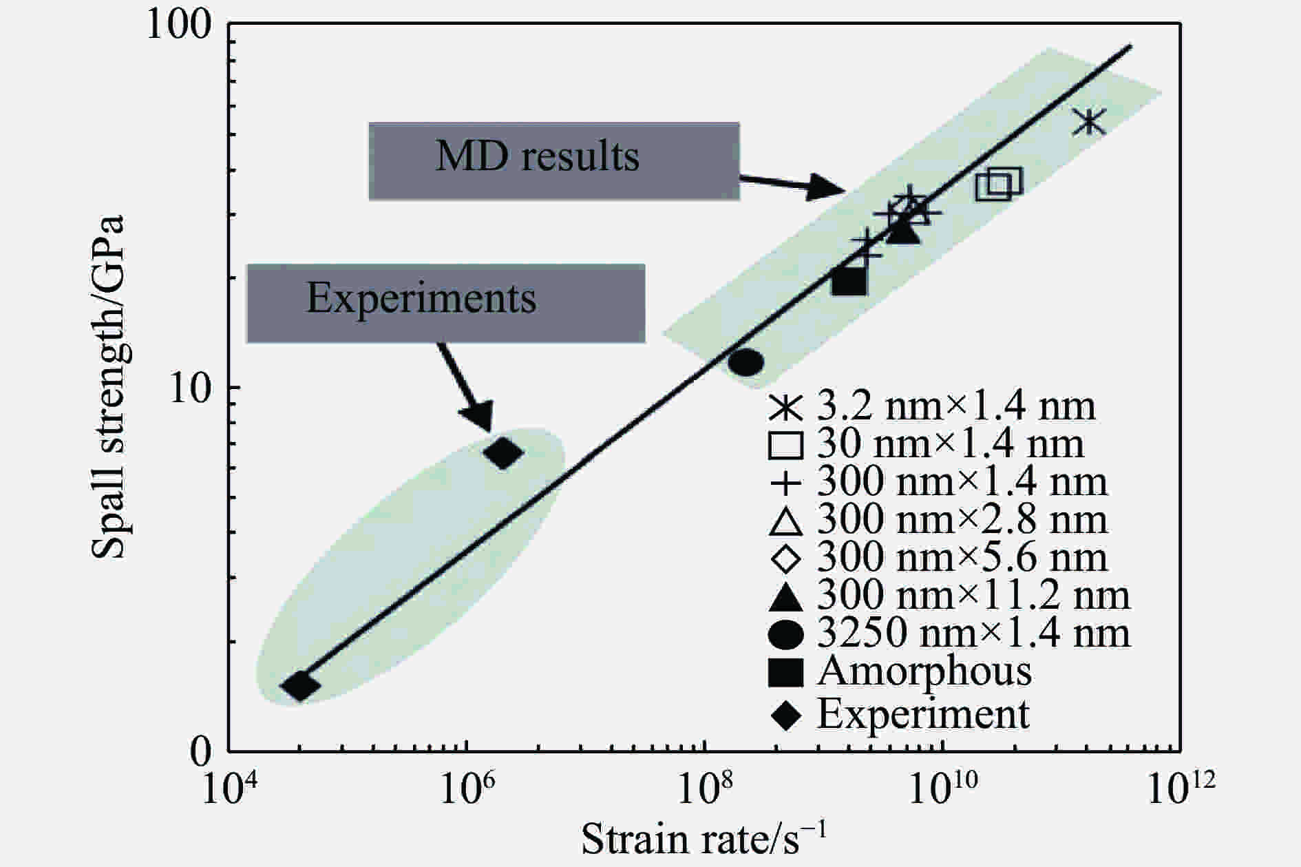 摘要: 随着计算机技术和实验诊断技术的发展,分子动力学(MD)方法在冲击动力学领域发挥着越来越重要的作用。从MD方法的基本原理出发,介绍了积分算法、相互作用势、常用的数据处理方法,系统梳理了MD方法在冲击加载下金属材料的塑性变形、相变、动态损伤断裂(层裂)等研究的应用。其中:在冲击塑性方面,主要阐述单晶、双晶和多晶体系中的塑性变形机理,以及变形过程与微结构等的联系;在冲击相变方面,主要以金属铁为例,介绍耦合冲击相变与冲击塑性的MD计算模拟工作;在动态损伤断裂方面,主要阐述冲击加载下金属材料中孔洞动态演化及贯通、激光加载下材料的动态响应等工作。最后,对MD方法的未来应用进行了展望,以期为相关领域的研究提供参考。Abstract: With the development of computer science and technology and diagnostic techniques, molecular dynamics (MD) simulation plays an increasingly important role in the field of shock dynamics. This review presents the basic principle of MD firstly, followed by integrated algorithm, inter-atom potentials, and some widely used data processing methods. Then the applications of MD in the plastic deformation of metals, phase transitions, and damage and fracture under shock loading (spallation) are presented in a systematic manner. The shock plasticity is focused on the micro-mechanisms of plastic deformation and the relationship between the deformation process and micro-structures in single crystals, twin crystals, and polycrystals. In terms of shock-induced phase transitions, the iron is taken as an example to emphasize the research focusing on the coupling of shock transitions and shock plasticity. The contents of dynamic damage and fracture mainly cover the void evolution and coalescence, dynamic response of materials under laser loading, and so on. Finally, a brief summary and perspective of MD regarding to future applications are offered, intending to provide the further information for the related researchers.
