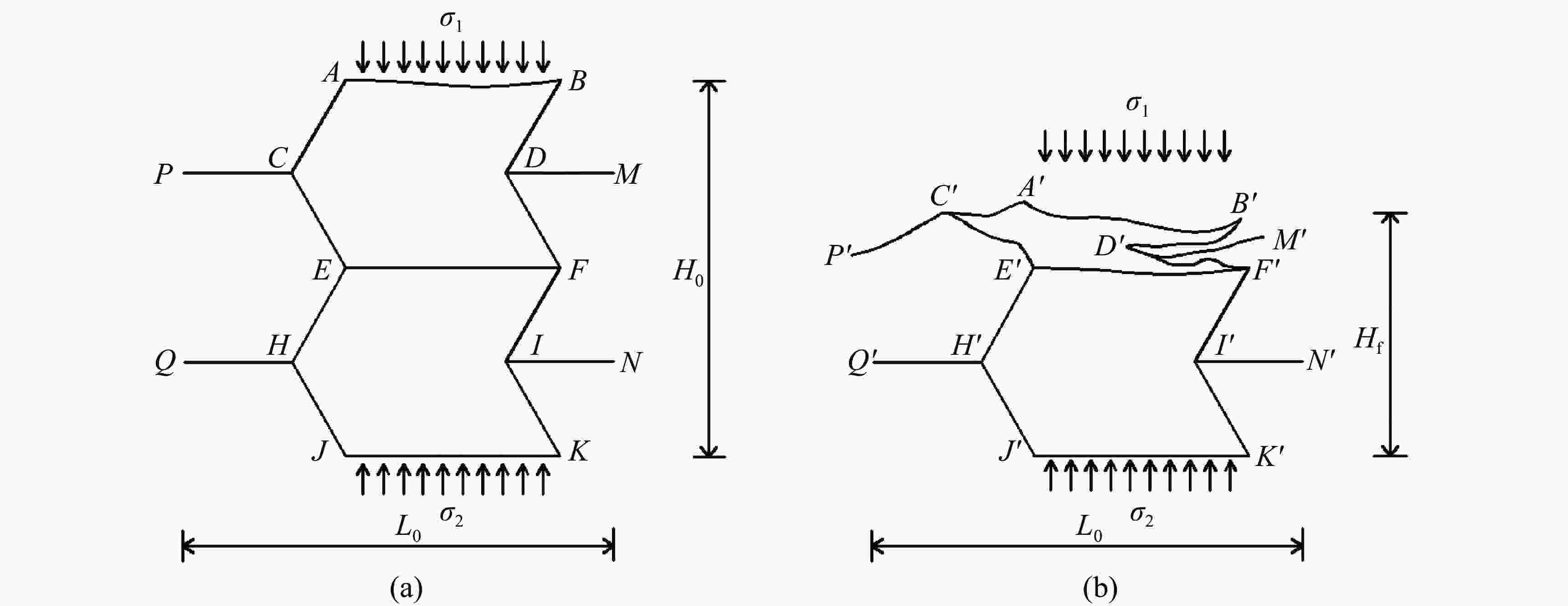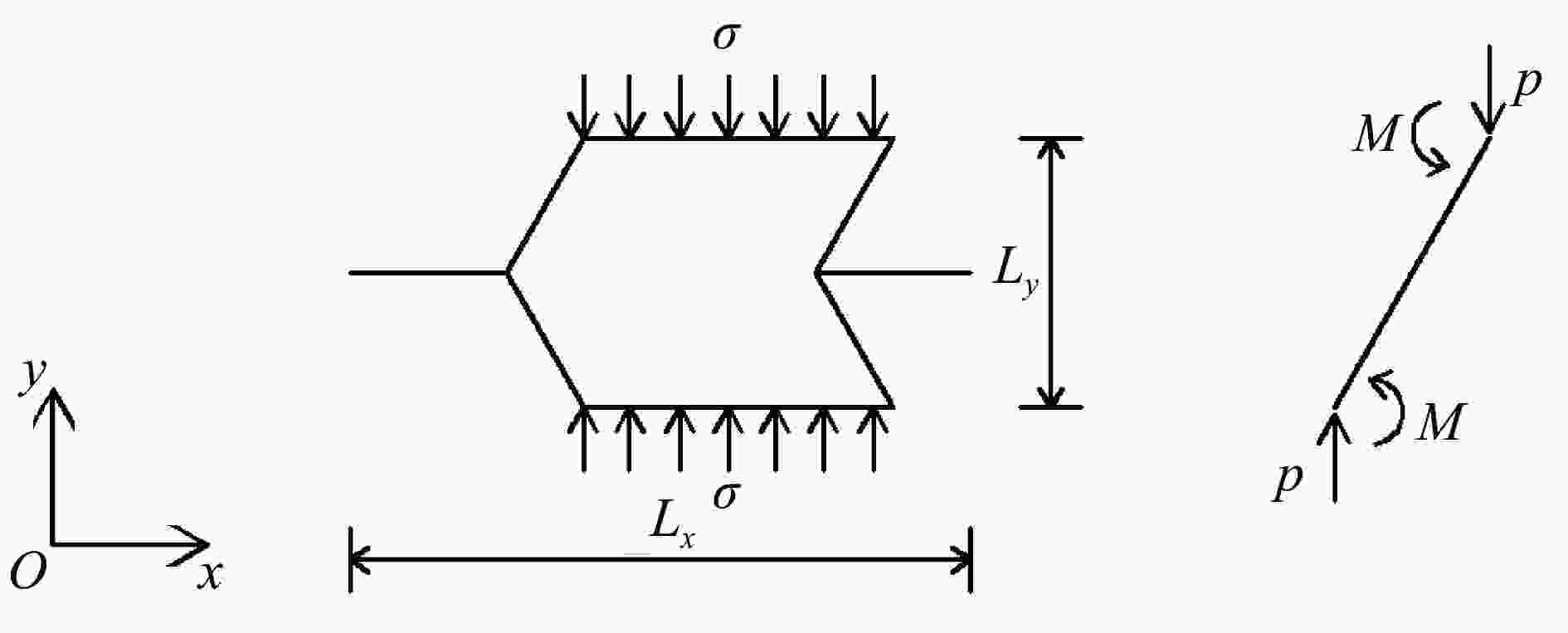 摘要: 半凹角蜂窝结构因其零泊松比特征,具有独特的变形方式。将其与传统正泊松比(正六边形)蜂窝以及负泊松比(凹角)蜂窝在面内冲击荷载作用下的抗冲击性能进行对比分析,揭示出零泊松比效应对动力学性能的影响。在给定胞元几何参数(长细比)的情况下,分析了3种蜂窝构型在不同冲击速度下的变形特征,得出半凹角蜂窝的零泊松比特性使结构的局部变形带以“I”型为主。根据一维冲击波理论,推导出半凹角蜂窝的平均抗压强度理论公式,与有限元结果进行对比,验证了该方法的有效性。数值结果表明,半凹角蜂窝的抗冲击性能介于正六边形蜂窝和凹角蜂窝之间。通过在半凹角蜂窝内部增加直杆,设计出一种新型零泊松比蜂窝,进一步提高了蜂窝结构的抗冲击性能,可为其他结构优化设计提供一定的理论参考。Abstract: The semi re-entrant honeycombs presented unique deformation modes due to its characteristic of zero Poisson’s ratio. The impact resistance of the semi re-entrant honeycombs under in-plane impact load was compared with that of the traditional positive Poisson’s ratio (regular hexagon) honeycombs and negative Poisson’s ratio (re-entrant) honeycombs, and the effects of zero Poisson’s ratio on its dynamic performance were revealed. Given cellular geometric parameters (cell wall’s aspect ratio), the deformation behaviors of three honeycomb configurations under different impact velocities were analyzed. It is concluded that dominant local deformation band of the semi re-entrant honeycomb is " I” type because of the zero Poisson ratio. According to the one-dimensional shock wave theory, a theoretical formula of the average dynamic crushing strength of semi re-entrant honeycombs was derived and compared with the finite element results to verify its effectiveness. Simultaneously, it was found that the impact resistance of semi re-entrant honeycombs was between regular hexagon honeycombs and re-entrant honeycombs. Therefore, a novel zero Poisson’s ratio honeycomb was designed by adding a rib into every cell of the semi re-entrant honeycomb, and its impact resistance was improved. These results provide certain theoretical references for other structural optimization designs.