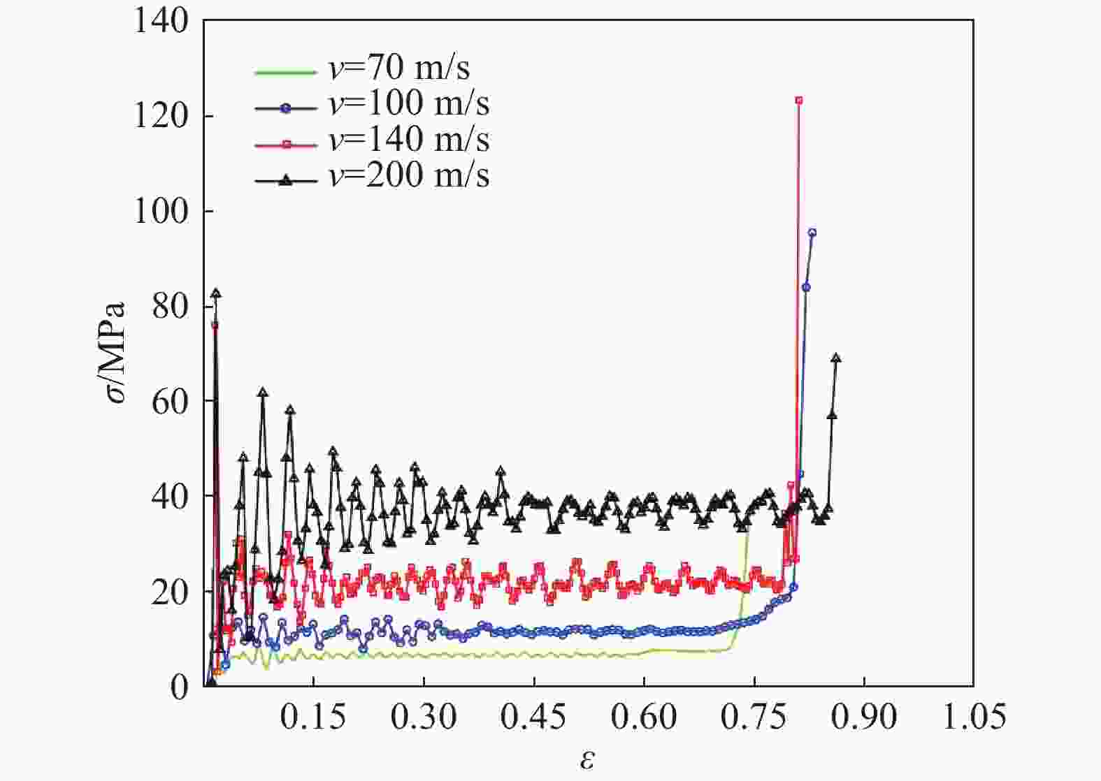h/mm v/(m∙s−1) Average crushing strength/MPa Deviation/% Theoretical Numerical 0.2 70 1.643 1.555 5.36 100 2.788 2.850 2.22 140 5.738 5.967 3.99 200 11.421 11.551 1.14 0.3 70 2.910 3.180 9.28 100 5.287 5.340 0.99 140 9.761 9.012 7.67 200 19.268 20.181 4.74 0.4 70 4.553 4.810 5.64 100 8.134 8.222 1.08 140 14.875 13.608 8.52 200 29.200 28.769 1.48 0.5 70 6.682 7.170 7.30 100 11.828 12.991 9.83 140 21.514 21.545 0.14 200 42.097 40.774 3.14 -