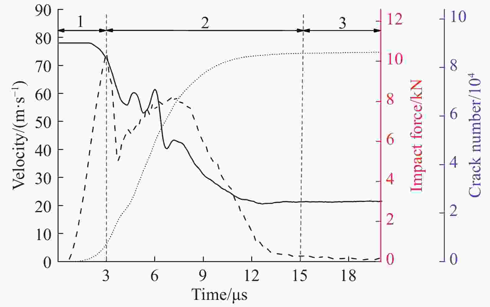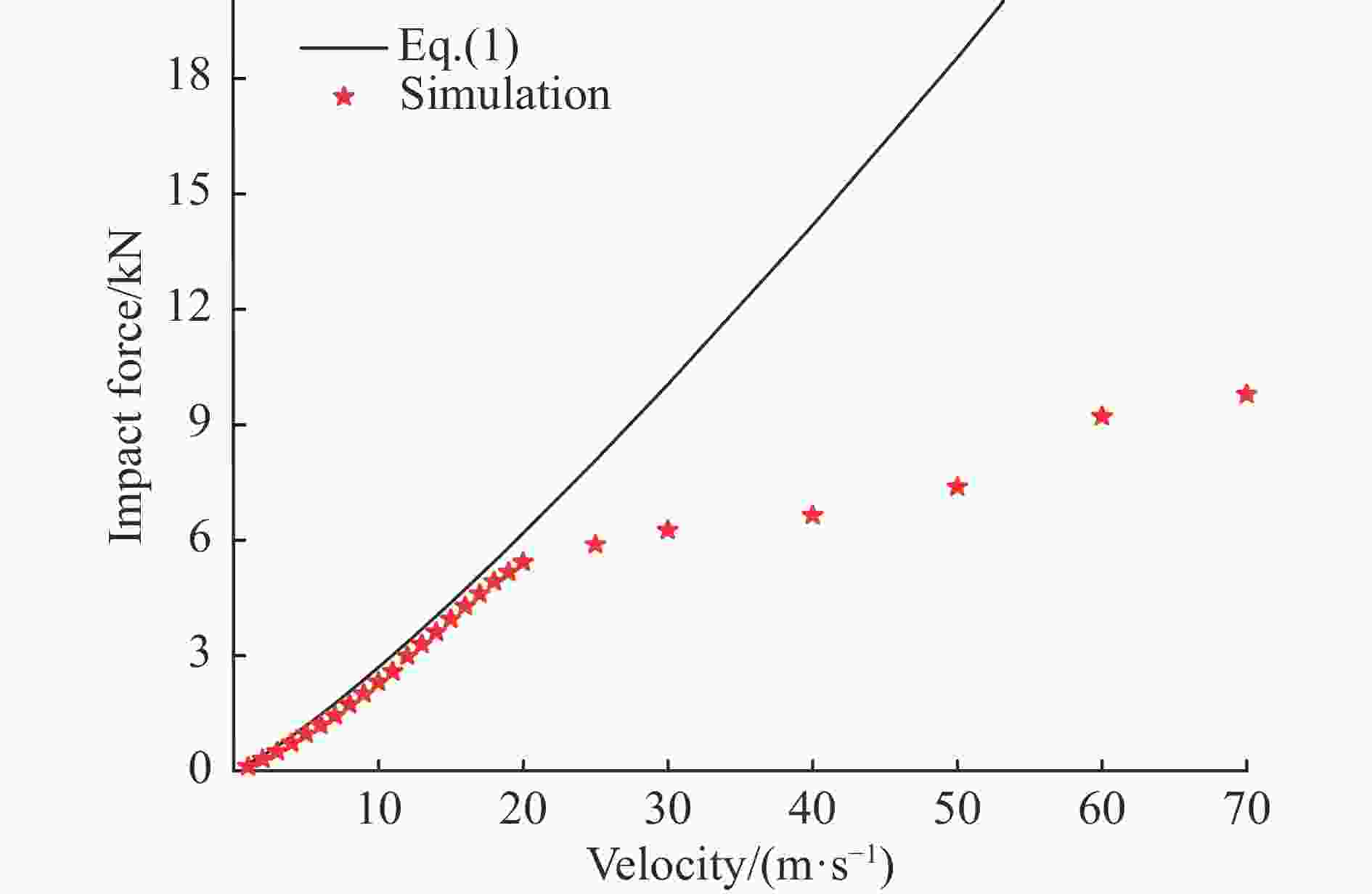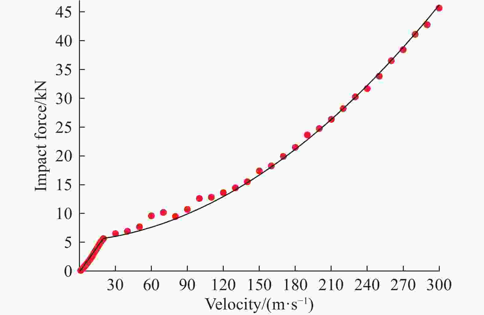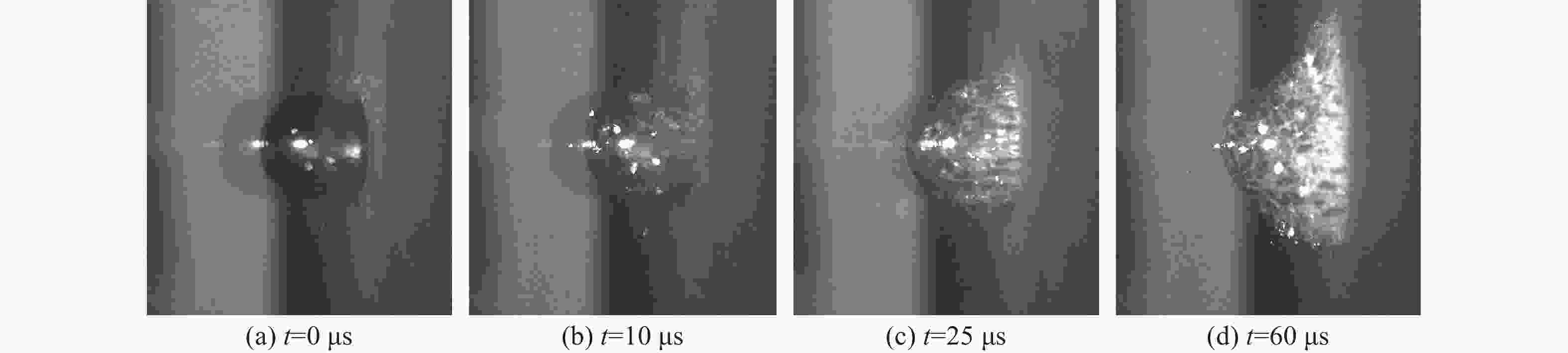 摘要: 利用高速枪对石英玻璃球撞击刚性靶板进行了实验研究,分析了不同速度下球体的破碎过程和失效模式。当冲击速度低于临界破坏速度时,石英玻璃球以略低于原速从靶板回弹;当超过临界破坏速度时,球体呈现“压缩破碎区-表面剥落区-剪切破坏区”的破坏结构;进一步提高碰撞速度,剪切破坏区的扩展导致球体碎裂为若干“月牙状”的碎块;更高撞击速度下,石英玻璃球发生坍塌式破碎,在远离撞击端处产生层裂现象。利用离散元软件对球体的撞击破坏过程进行了模拟研究,球体在高速碰撞下的破碎可以分为弹性压缩、整体破碎和二次撞击3个阶段。球体碎裂前Hertz接触理论可以较好描述其撞击力,而破碎后的撞击力由于碎裂卸载远小于理论值,且偏差随冲击速度逐渐增加。Abstract: The high-speed gun is used to study the impact of quartz glass ball on rigid target plate. The crushing process and failure mode of the ball at different speeds are analyzed. When the impact velocity is lower than the critical failure velocity, the quartz glass ball rebounds from the target plate, and the rebounding speed is slightly below the original speed; when the critical speed is exceeded, the sphere exhibits a “compressed fracture zone–surface spalling zone–shear failure zone” failure structure; further increasing the collision velocity, the expansion of the shear failure zone causes the sphere to be fragmented into several “crescent” fragments. At higher impact speeds, the quartz glass ball collapses and spalls at a distance away from the impact end. Furthermore, the discrete element software is utilized to simulate the impact damage process of the sphere. The crushing of the sphere under high-speed collision can be divided into three stages: elastic compression, integral crushing, secondary impact. Before the ball breaks, the Hertz contact theory can describe its impact force well, but the crushing force is much smaller than the theoretical value due to the fracture unloading, and the deviation gradually increases with the increasing impact speed.