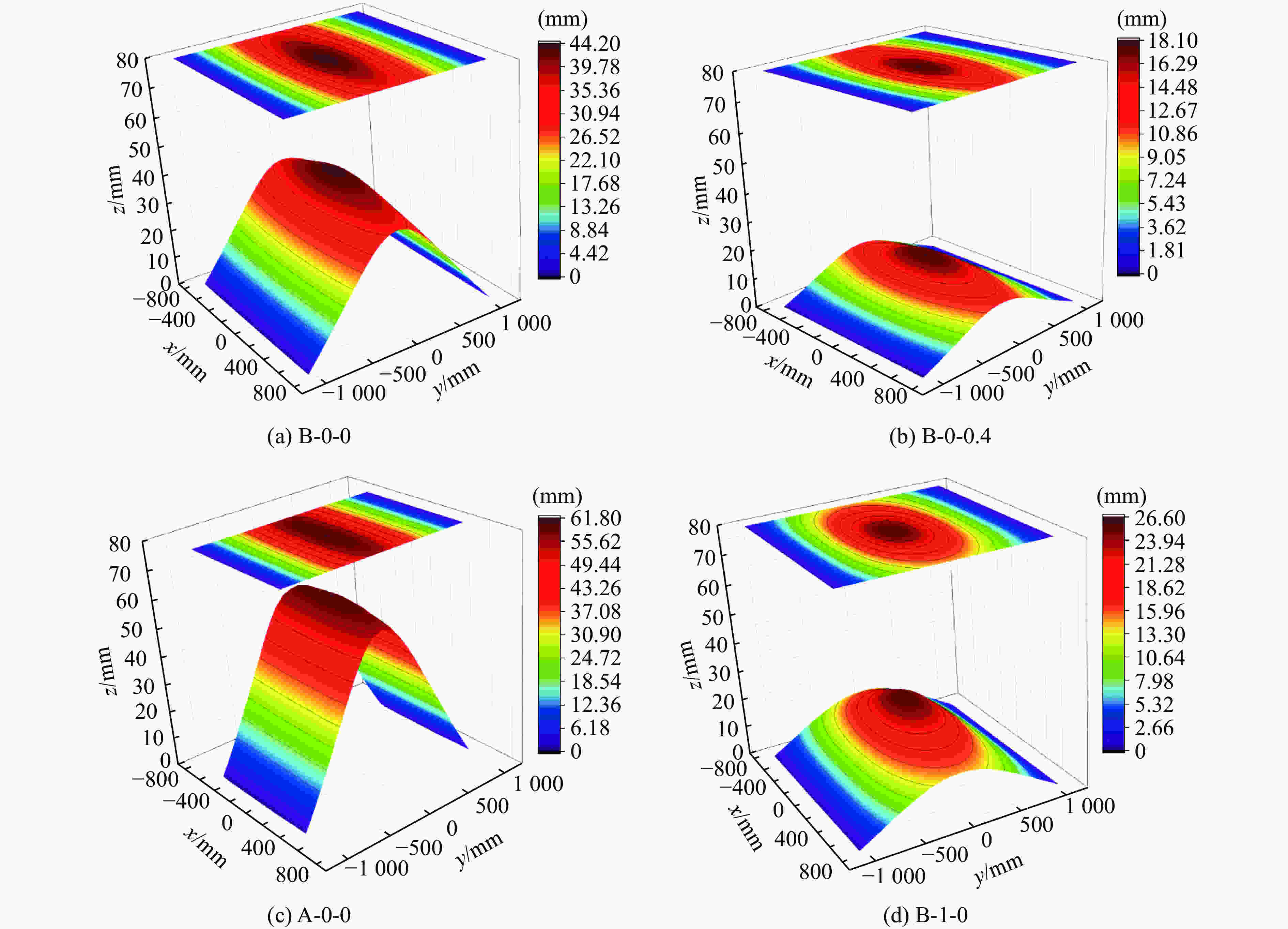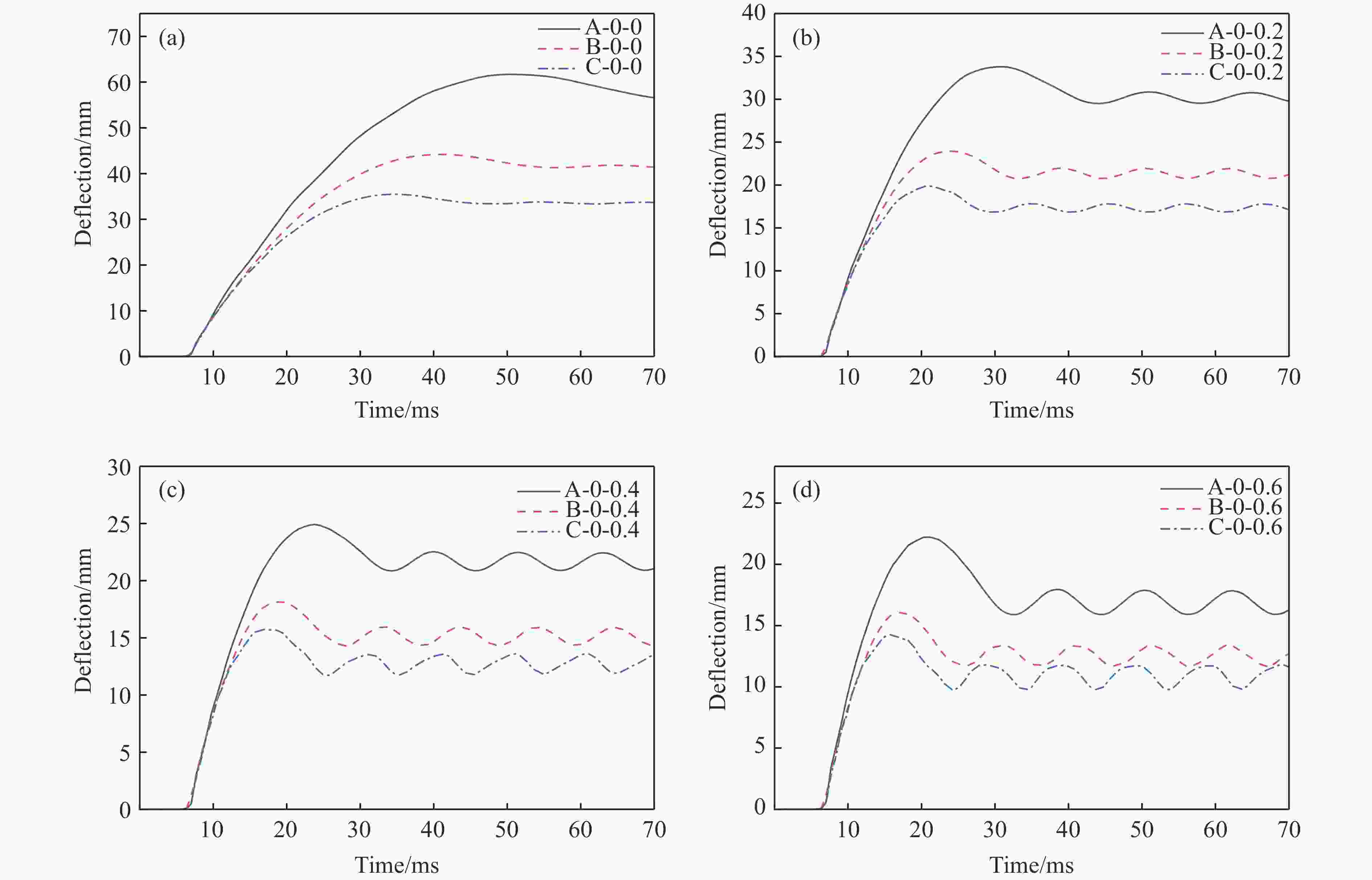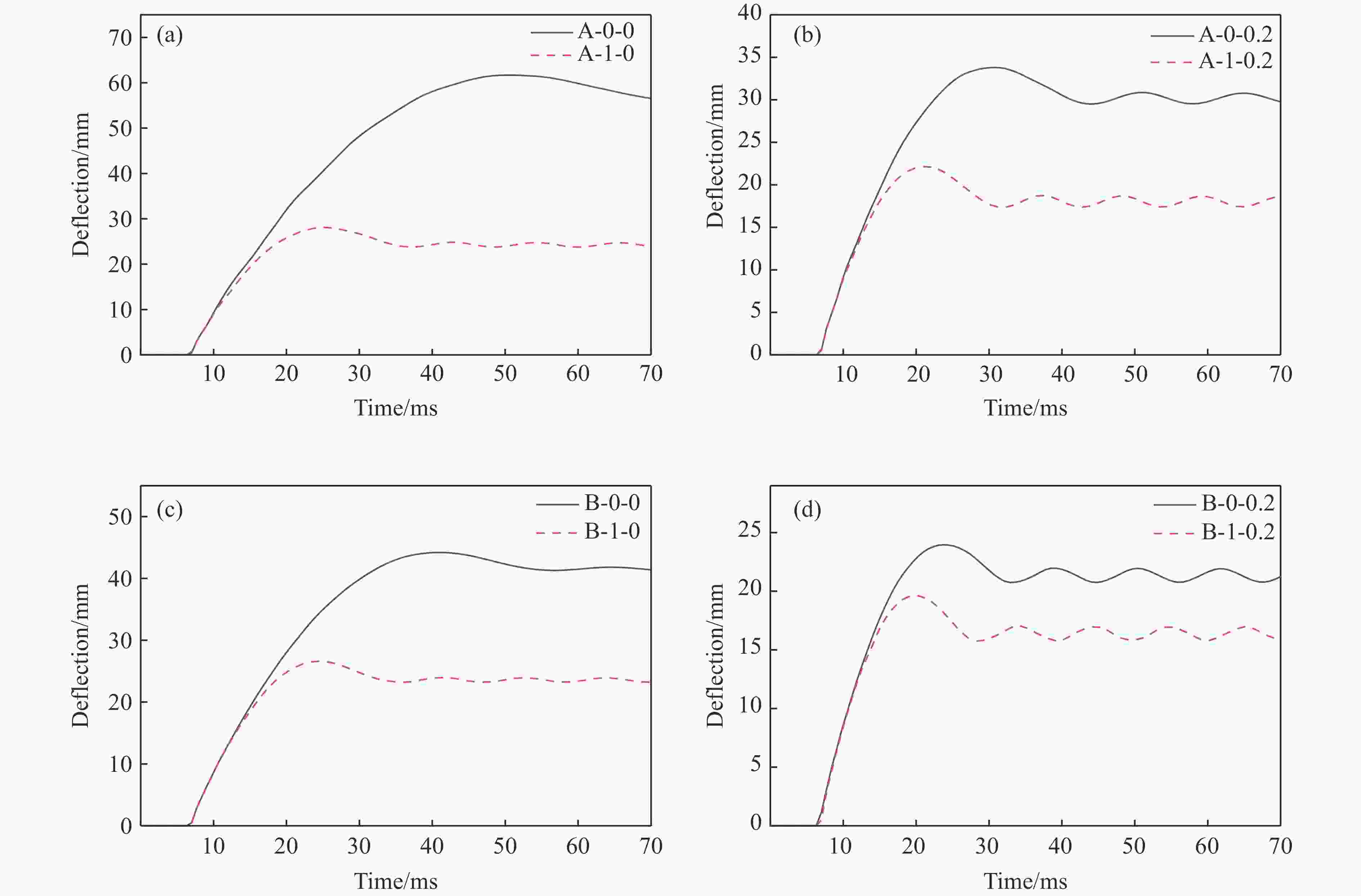No. Maximum displacement/mm Relative error/% Measured Simulation A-1 81.0 82.8 2.22 A-2 74.0 74.0 0 A-3 83.6 90.6 8.37 A-4 89.5 86.6 –3.24 表 3 墙板中心最大位移