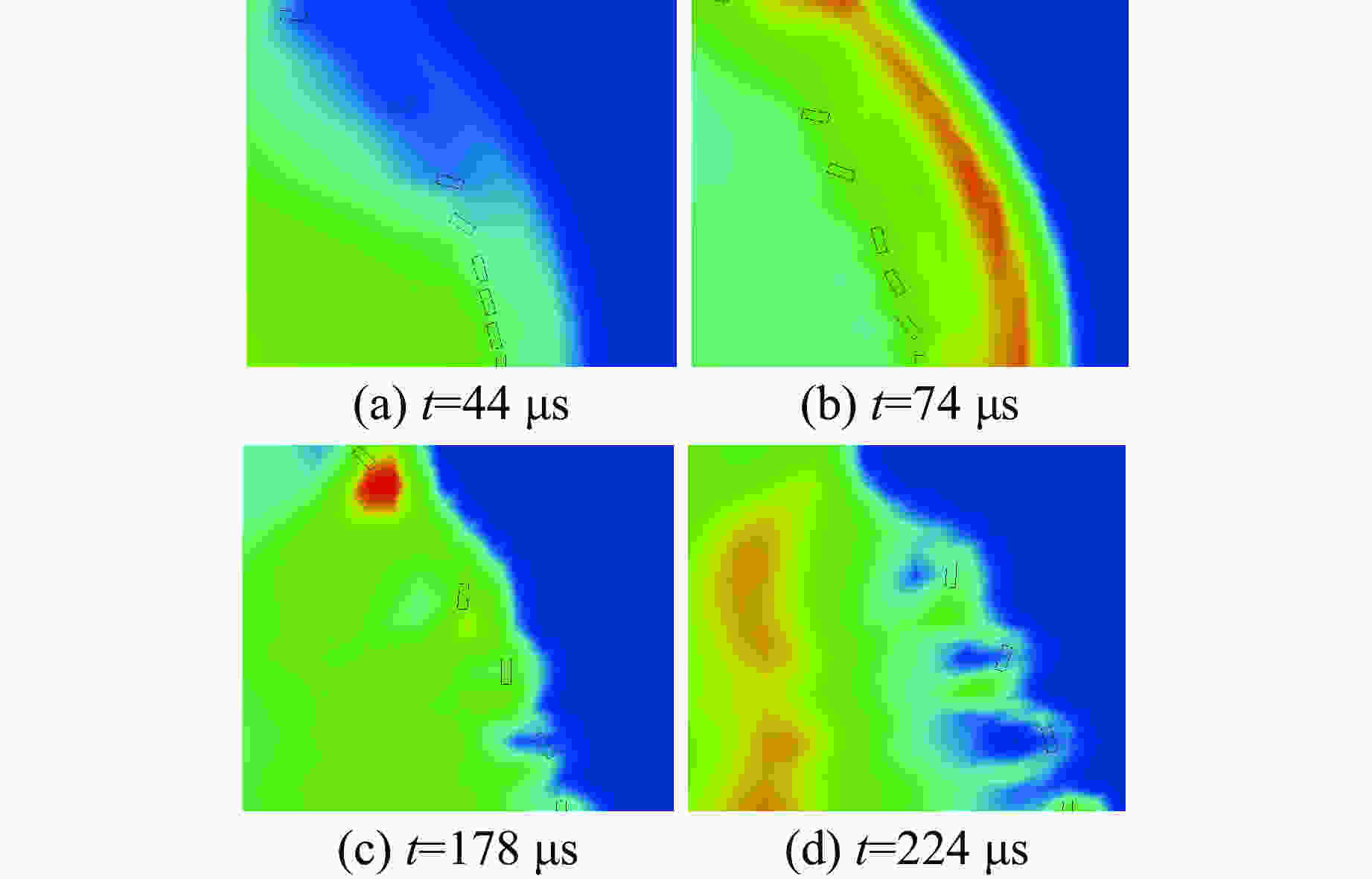 ρ/(kg∙m–3) D/(m∙s–1) pCJ/GPa E/(GJ∙m–3) A1/GPa B1/GPa R1 R2 ω V 1 640 6 930 19.4 6.2 309 3.09 4.485 0.79 0.30 1 表 4 空气材料参数及状态方程参数
