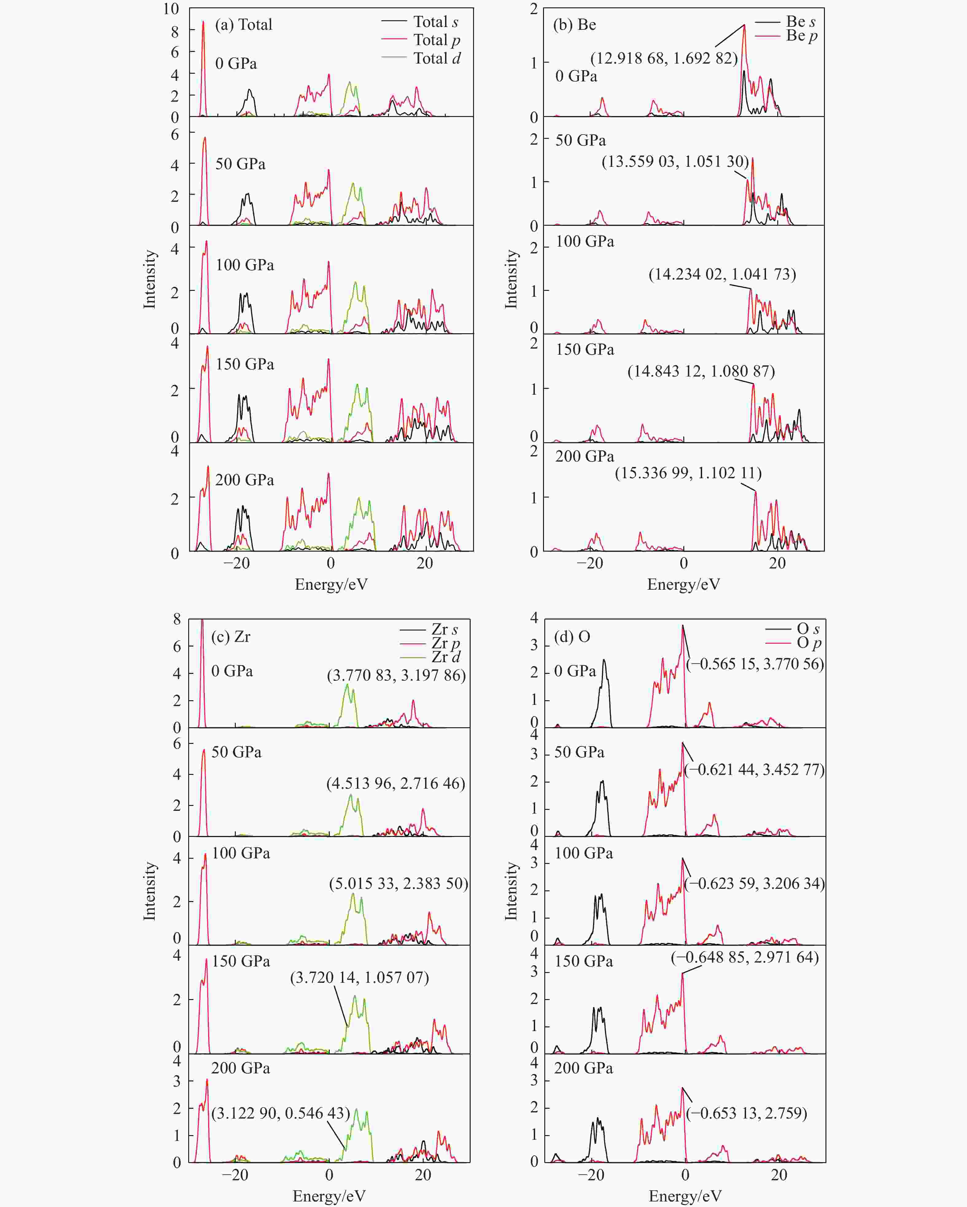 GPaAtomic s p d Bond Be-O Bond Zr-O Population Bond length/nm Population Bond length/nm 0 Be/Zr/O(3) 2.34/2.26/1.82 1.11/6.31/4.89 0/1.84/0 0.63 0.173 0 0.62 0.244 7 50 Be/Zr/O(3) 2.31/2.18/1.79 1.24/6.24/4.92 0/1.91/0 0.69 0.162 5 0.53 0.229 8 100 Be/Zr/O(3) 2.29/2.12/1.77 1.31/6.21/4.93 0/1.97/0 0.72 0.157 7 0.47 0.223 0 150 Be/Zr/O(3) 2.27/2.08/1.76 1.37/6.18/4.94 0/2.01/0 0.75 0.154 2 0.40 0.218 0 200 Be/Zr/O(3) 2.26/2.04/1.75 1.42/6.16/4.94 0/2.05/0 0.77 0.151 3 0.33 0.214 0 -