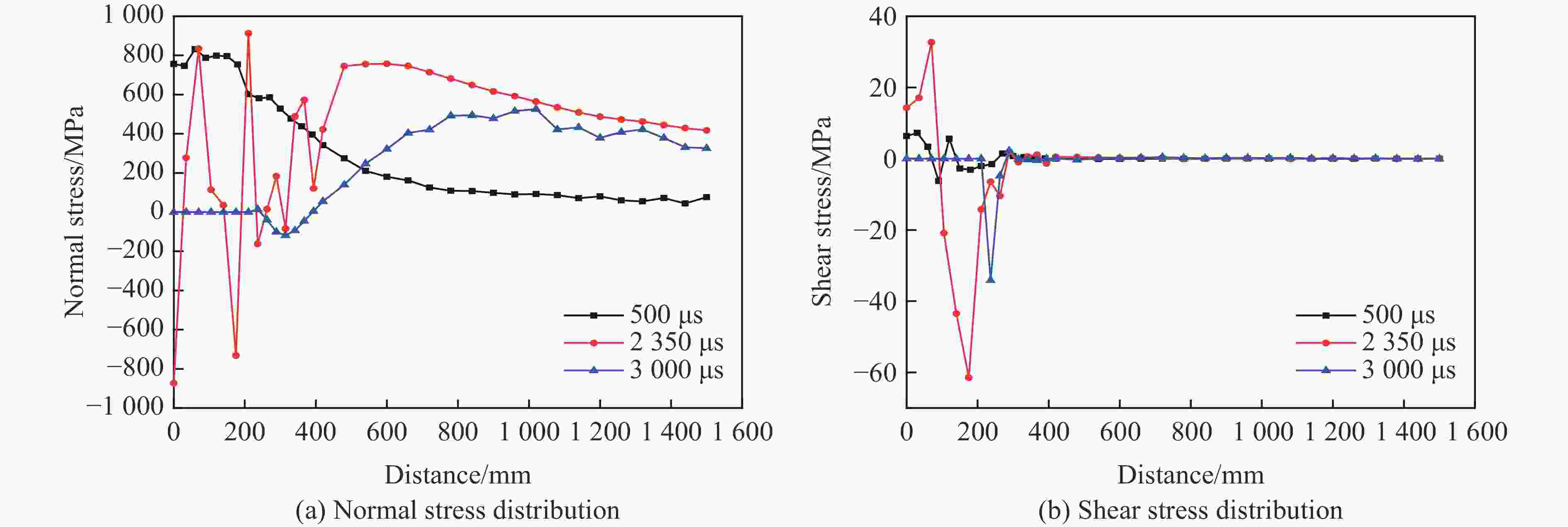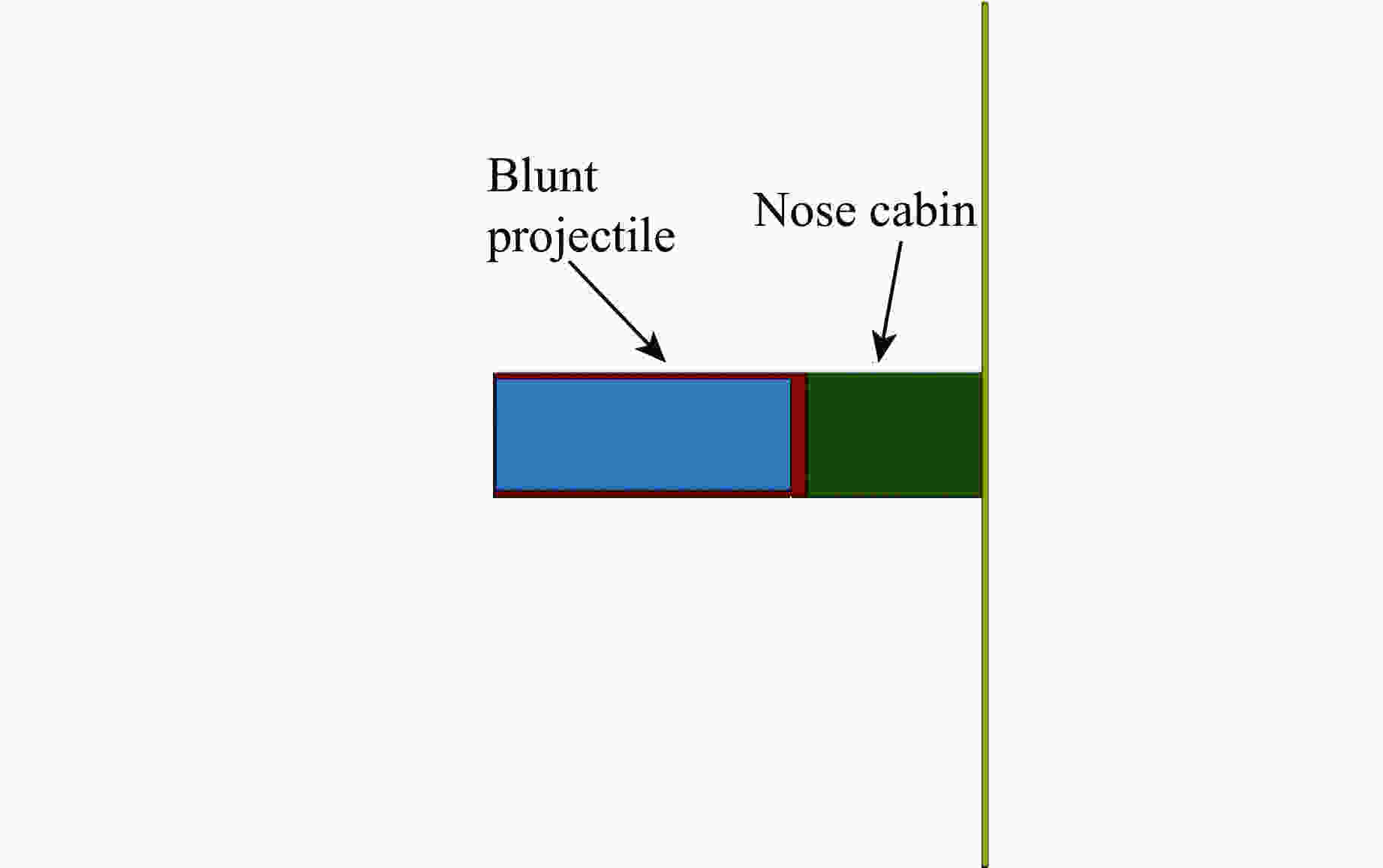 摘要: 为了研究前舱物对低速大质量平头弹侵彻金属薄靶的影响,根据前舱物的力学特性,将前舱物等效为轻质泡沫铝材料,建立了含前舱物的平头弹结构有限元分析模型,开展了不同工况下带前舱物平头弹侵彻金属薄板的数值模拟计算,分析了带前舱物平头弹侵彻金属薄板的过程,对比了带前舱物平头弹和不计前舱物平头弹在不同工况下剩余速度的差异。数值计算结果表明:带前舱物平头弹与不计前舱物平头弹的侵彻过程存在明显差异,但靶板破坏模式相同;前舱物等效材料的屈服强度对平头弹侵彻性能的影响很小,可以忽略不计;前舱物有助于提高平头弹侵彻金属薄板的能力,但提升幅度有限。在实际工程应用中,可以忽略前舱物对平头弹侵彻金属薄板的影响。Abstract: In order to study the effect of nose cabin on projectile low speed and high mass during the penetration of metal plates, a finite element analysis model of blunt projectile with nose cabin was established. Based on the mechanical properties, nose cabin can be regarded as equivalent to light foam aluminum material. Numerical simulation of blunt projectile with nose cabin penetrates into metal plates under different working conditions were implemented. The progress of projectile with nose cabin penetrates into metal plate was analyzed. The difference between residual velocity of blunt projectile with and without nose cabin was compared. The results show that there are significant differences in the progress of projectiles penetration into metal plates between blunt projectiles with and without nose cabin. Nevertheless, the failure modes for both conditions are similar. The yield stress of equivalent material of nose cabin has limited influence on penetrative performance of projectile. In conclusion, nose cabin can bring very limited improvement to the penetration capability of blunt projectile, and the effect of nose cabin can be neglected in practical engineering applications.