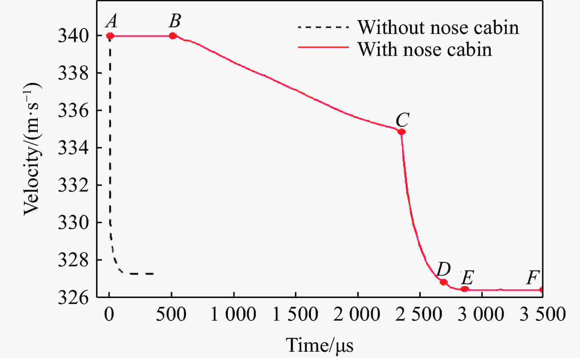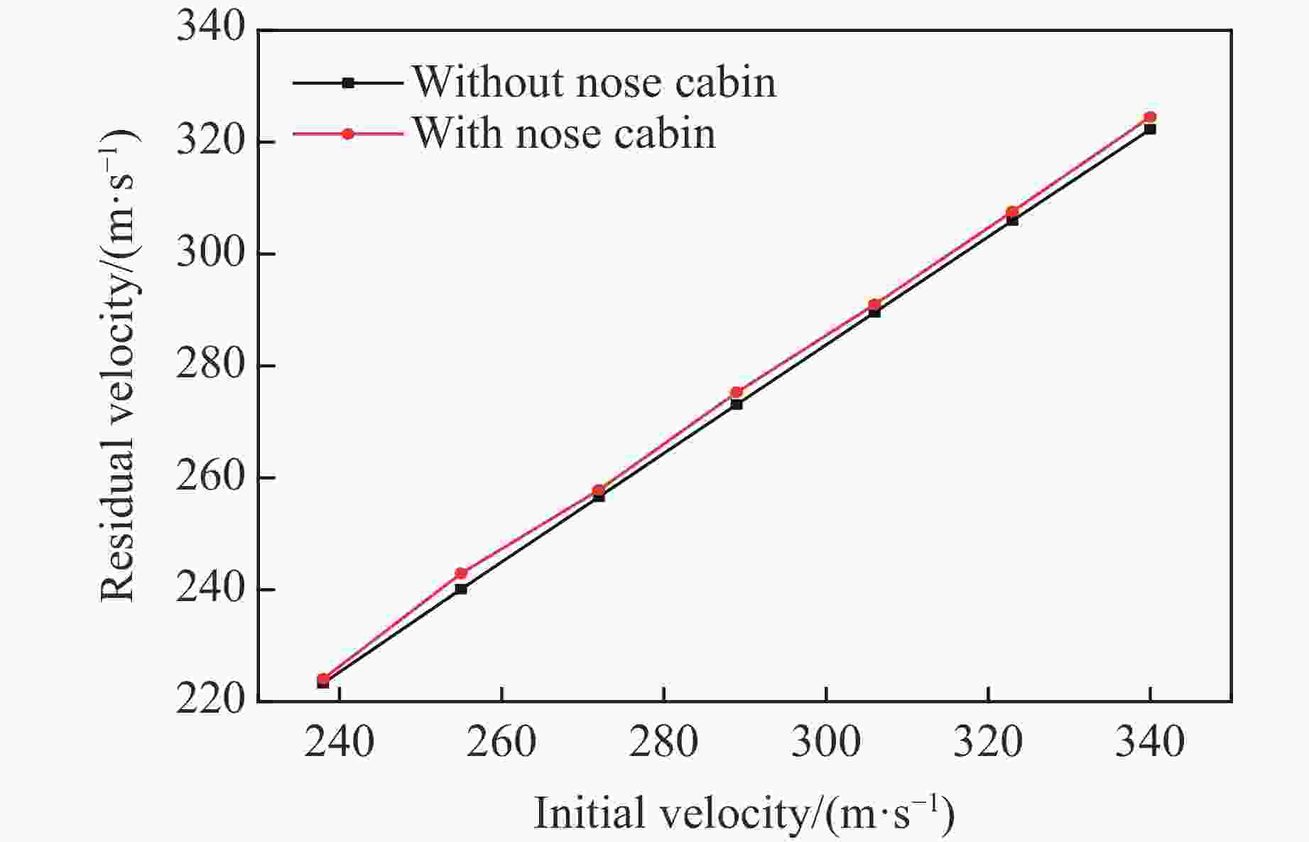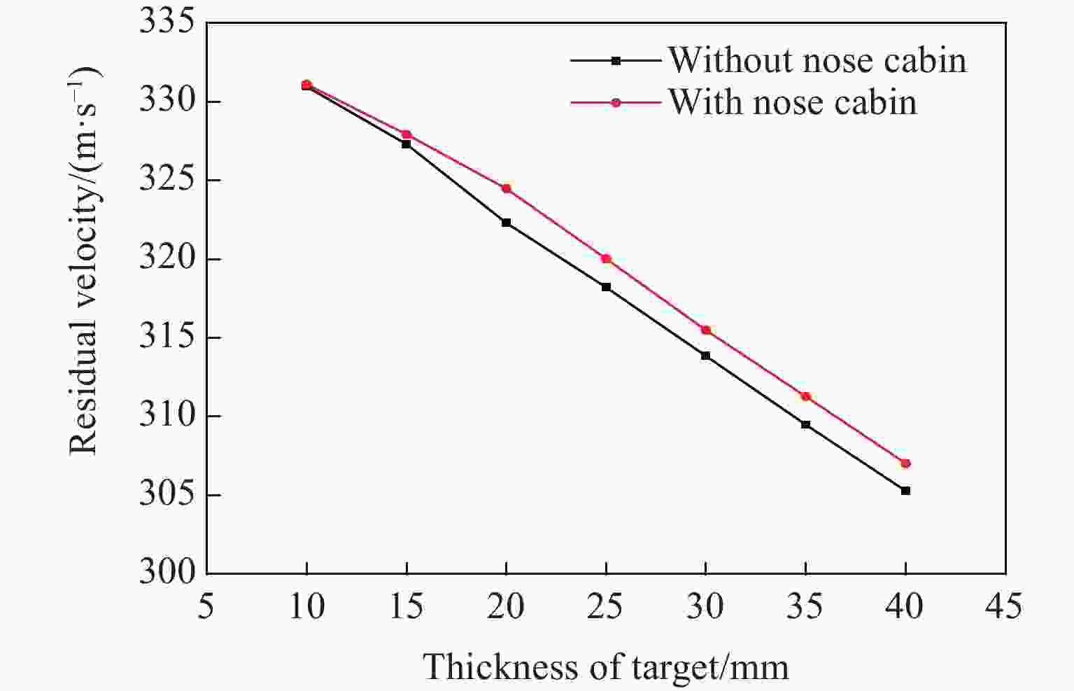 Material ρ/(kg·m–3) E/GPa μ σy/MPa Et/MPa β c/s–1 p fs Charge 1 750 5 0.3 20 300 0 0 0 5 Nose cabin 700 0.5 0.3 0.5–10.0 0 0 0 0 0.4 表 3 不同等效屈服强度下侵彻结果的比较