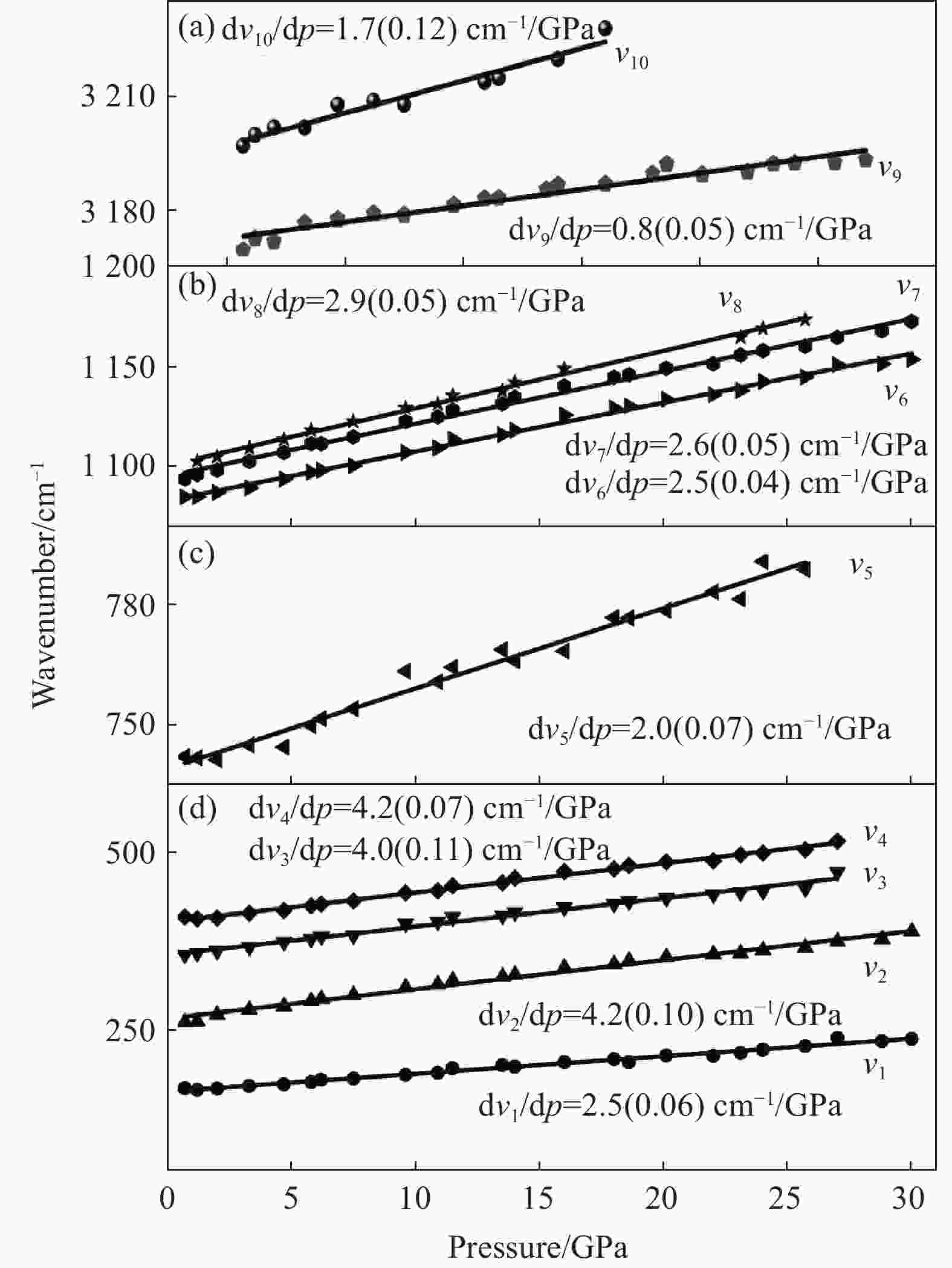 表  3  不同拉曼峰的压力依赖系数及误差