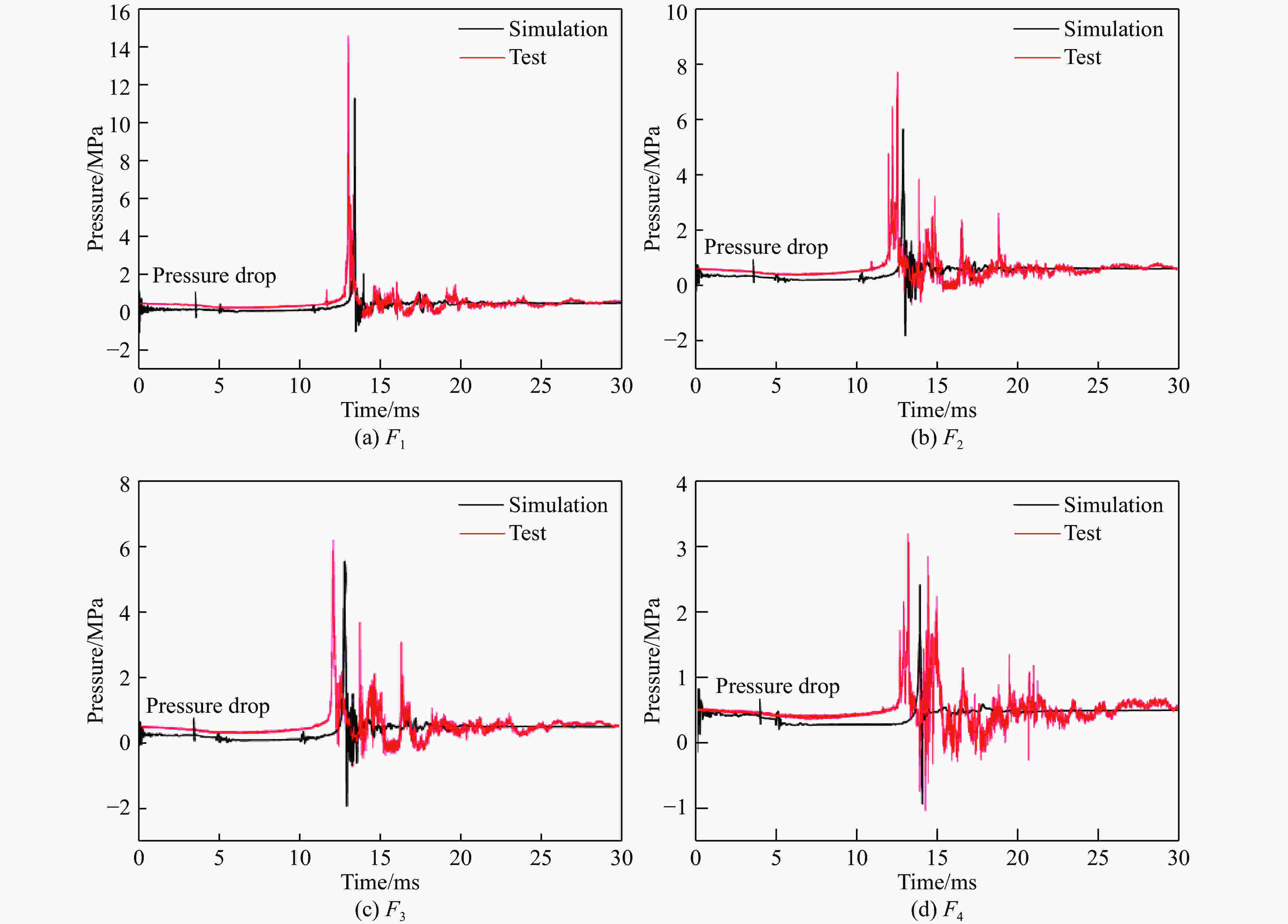 Measuring point Pressure peak/MPa Error/% Test Simulation F1 14.63 11.28 22.90 F2 7.68 5.53 27.90 F3 6.18 5.53 10.51 F4 3.19 2.49 21.90 表 2 拟合系数值