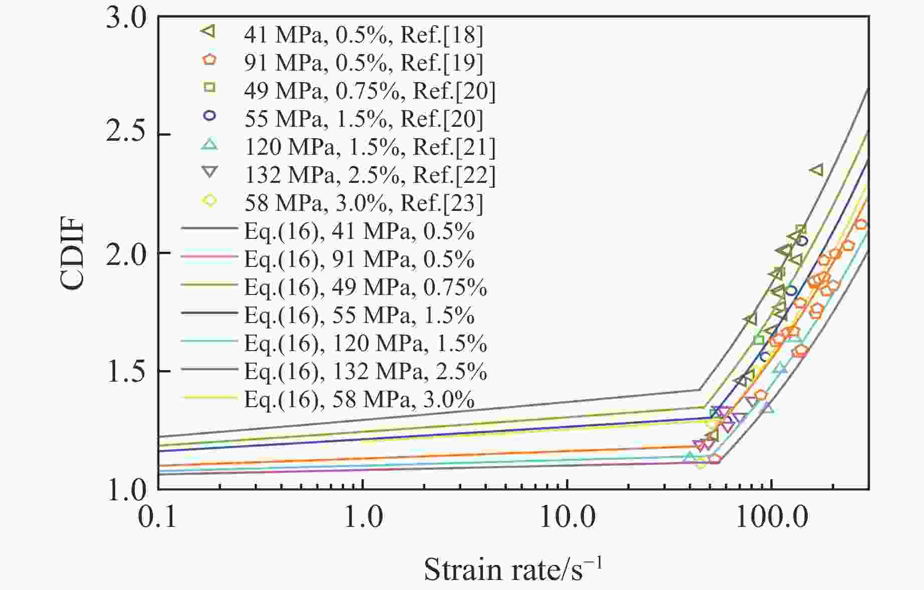 摘要: 钢纤维混凝土(Steel fiber reinforced concrete,SFRC)具有优异的延性、韧性及能量吸收能力,被广泛应用于各类防护结构。K&C模型已成为研究普通混凝土构件动力响应的常用材料模型,但仍无法准确表征SFRC的动力特性。为了提高K&C模型在冲击及爆炸荷载作用下预测SFRC板动力响应的能力,对K&C模型进行了改进:基于大量三轴压缩实验数据,建立了新的失效强度面参数模型;采用反复试验法,建立了新的损伤演化模型,并校准了拉、压损伤参数;基于大量高应变率下SFRC的单轴压缩实验数据,建立了新的受压动力增强因子模型。通过LS-DYNA显式有限元动力分析软件模拟了SFRC板的动力响应,模拟结果验证了上述改进的有效性与可靠性。Abstract: Steel fiber reinforced concrete (SFRC) is widely used in protective structures due to its excellent ductility, toughness and energy absorption capacity. K&C model is a common constitutive model for studying the response of normal concrete components under impact and blast loads, but it cannot accurately characterize the dynamic response of SFRC. In order to improve prediction of K&C model for the dynamic response of SFRC plate under impact and blast load, this work improves K&C model: a new failure strength surface parameter model was established based on a large number of triaxial compression experimental data, a new damage evolution model was established by trial-and-error method, and the damage parameters of tensile and compressive were calibrated. A new compression dynamic increase factor (CDIF) model was established based on a large number of uniaxial compression experimental data of SFRC under high strain rate. The dynamic response of SFRC plate is simulated by explicit dynamic analysis software LS-DYNA. The effectiveness and reliability of the above improvements have been verified by simulation results.